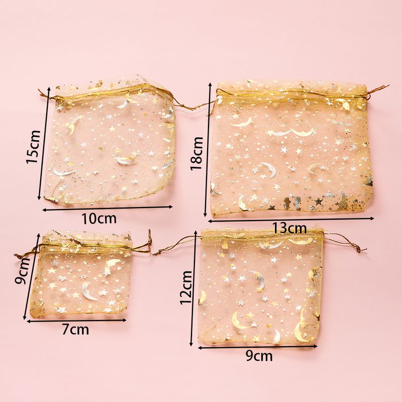 10pcs/Lot Multiple-sizes Printing Star Moon Christmas Organza Sack Drawstring Charm Packaging Bags Daily Jewelry Package