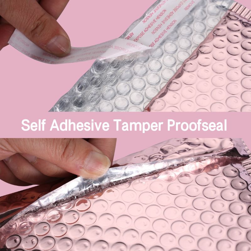 4.Self-Adhering Envelopes: The poly bubble mailers come with a self-adhesive tamperproof seal. Once the envelope has been sealed, it cannot be opened without visible signs of tampering. The smooth surface of the mailers makes it easy to stick stamps and address labels.