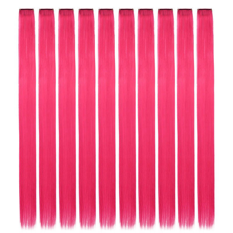 10PCS/Pack Colored Party Highlights Clip in Hair Extensions for Girls 22 Inches Omber colors Straight Hair Synthetic Hairpieces
