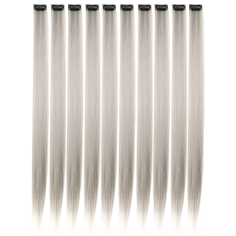 10PCS/Pack Colored Party Highlights Clip in Hair Extensions for Girls 22 Inches Omber colors Straight Hair Synthetic Hairpieces
