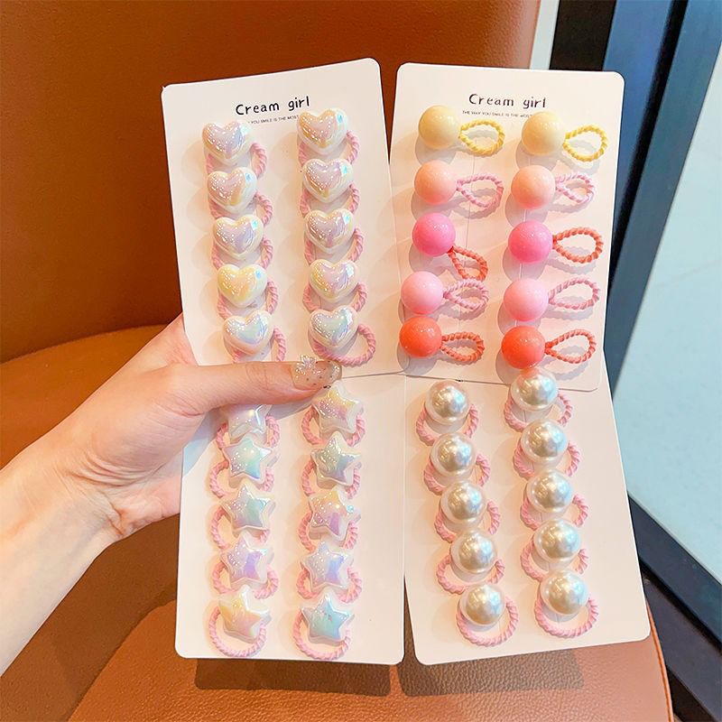 3.There are 3 styles, star-shape hair tie, heart-shape hair tie and round hair tie. They looks fancy and delicate, very perfect for creating elegant and dreamy hair styles.