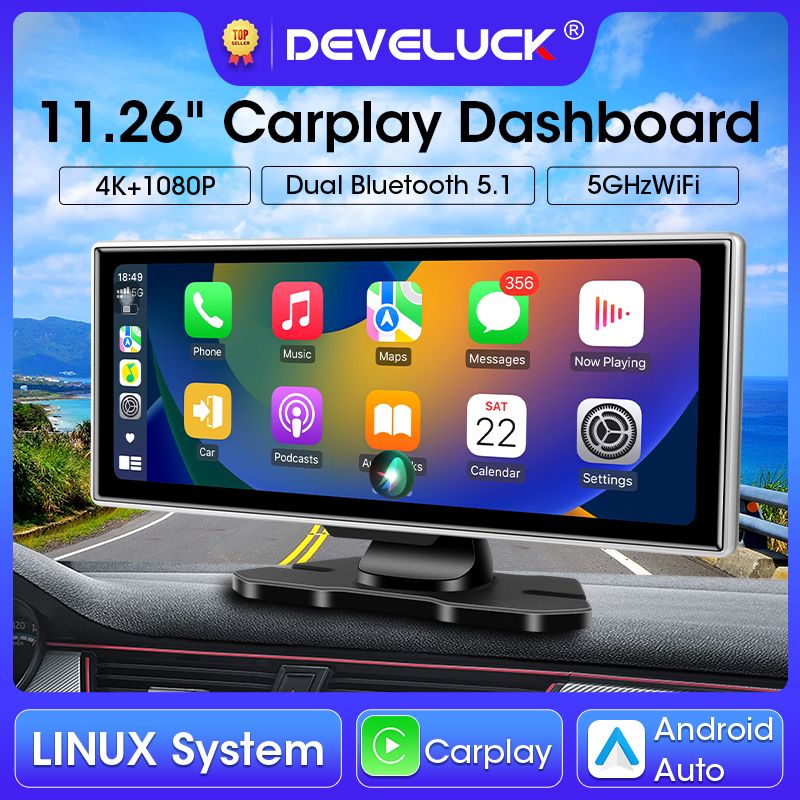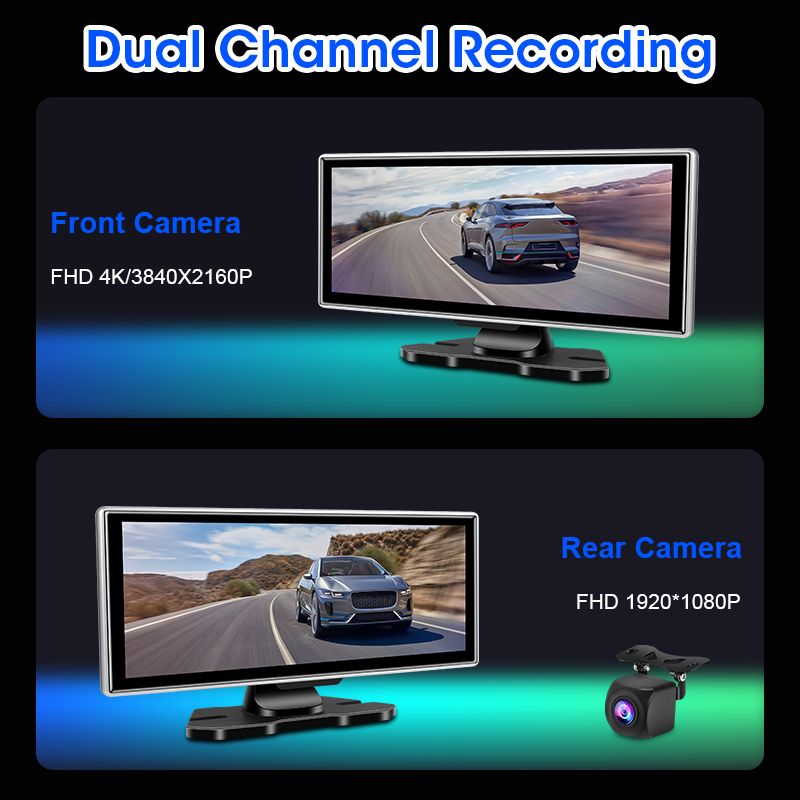 11.26 inch Car DVR 4K Dash Cam Dual Lens Wireless Carplay & Android Auto Video Recorder Monitor GPS Navigation 5G Wifi FM AUX