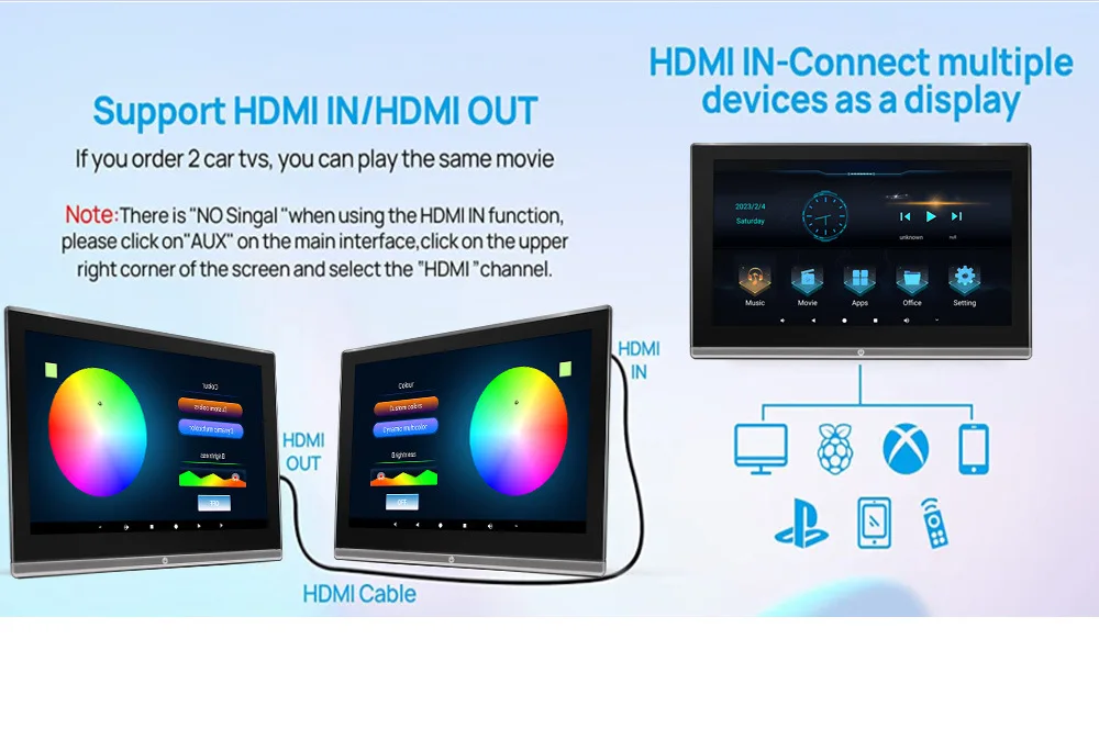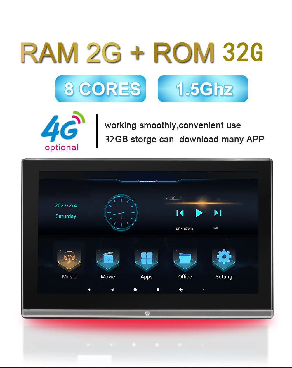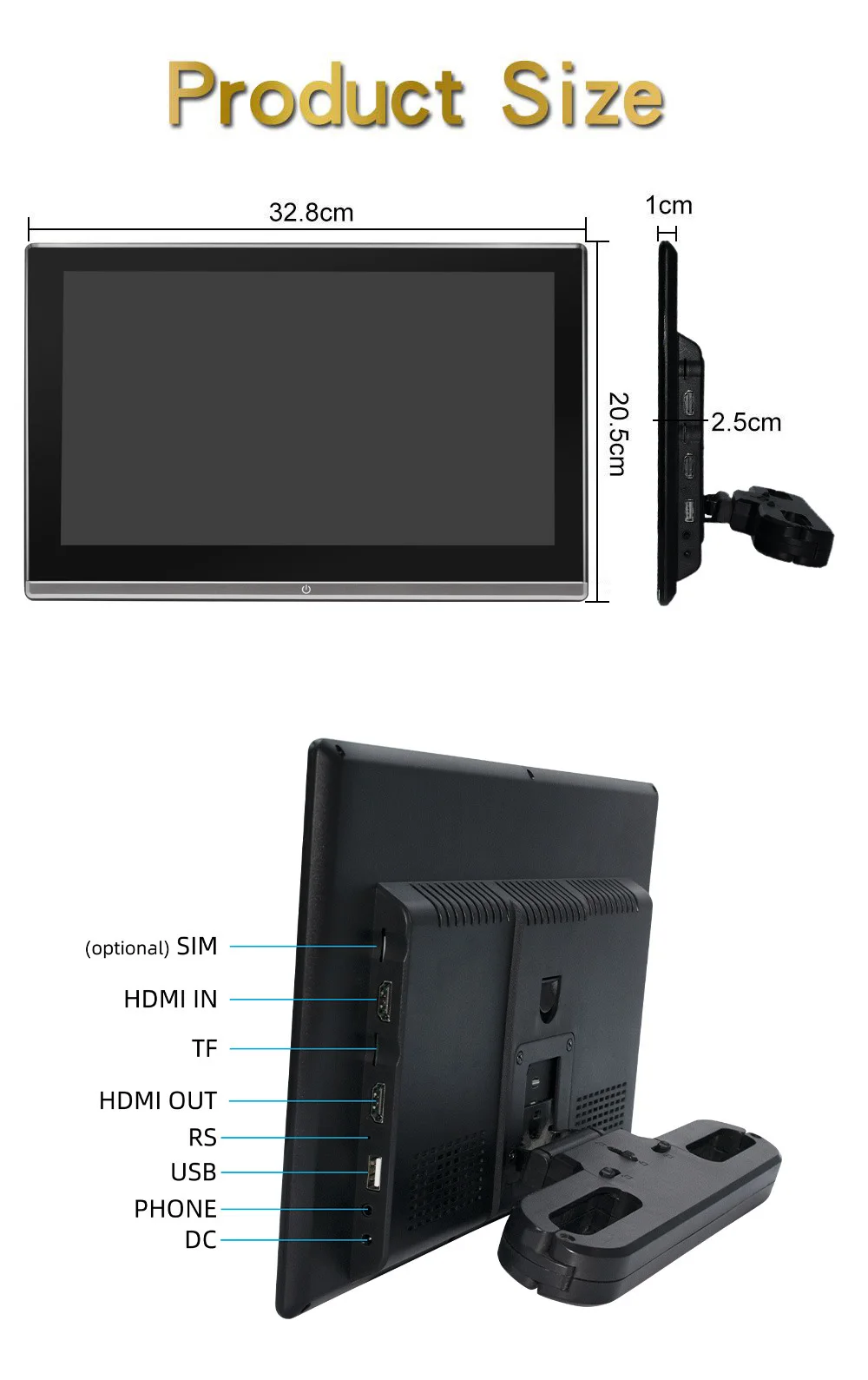 11.6inch External Android Monitor GPS TV Camera-Dual HD Real Version 14 for Rear Seat Entertainment Headrest Entertainment