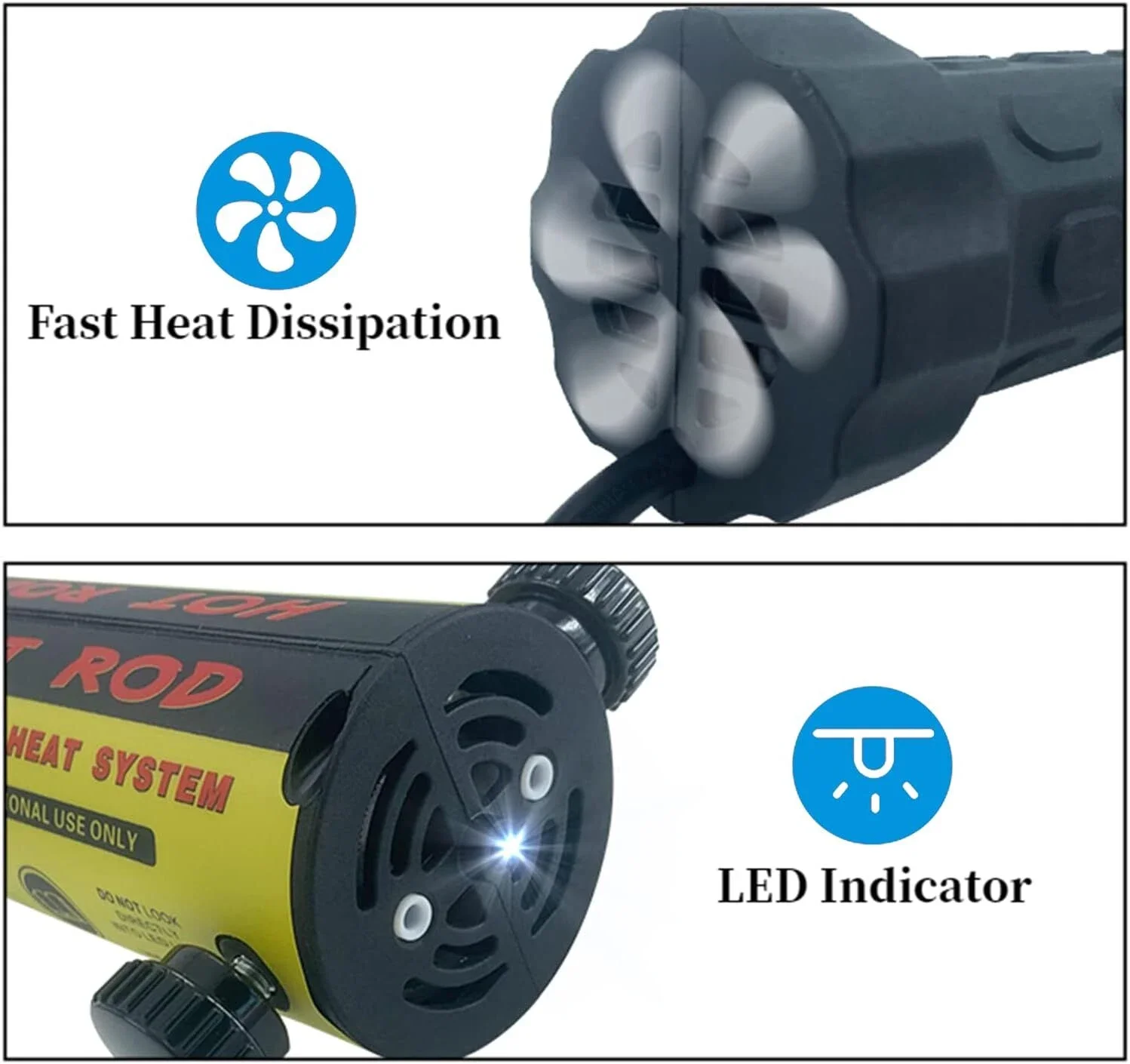 2. [LED LIGHT] The end of this heater is designed with LED light, which can provides lighting when working in the dark, you can clearer understand the work progress and the status of heated objects.