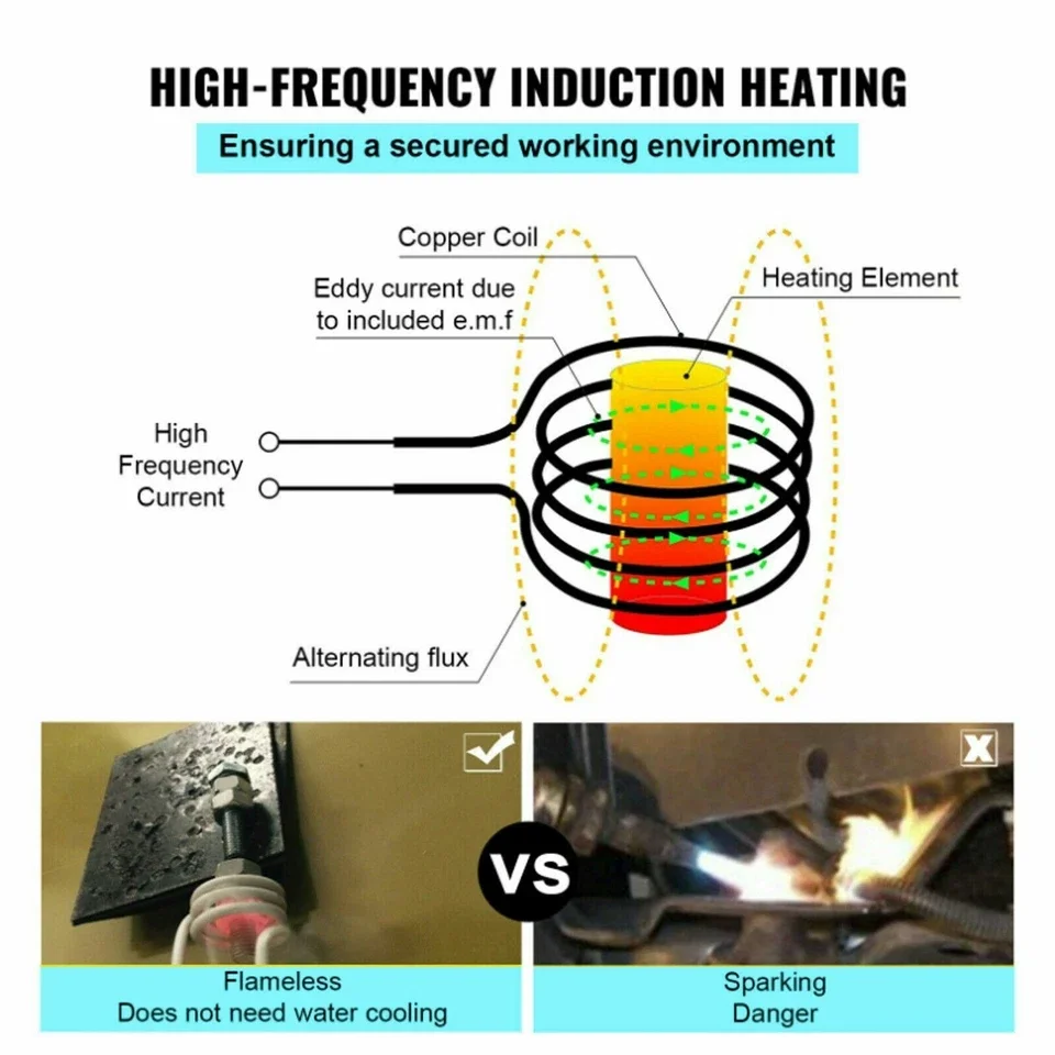 6. [WIDELY APPLICABLE] The magnetic induction heater is mainly used to heat nuts and rusty screws, suitable for automobiles, machinery, and various small metal parts such as gears, pulleys, bearings, etc.