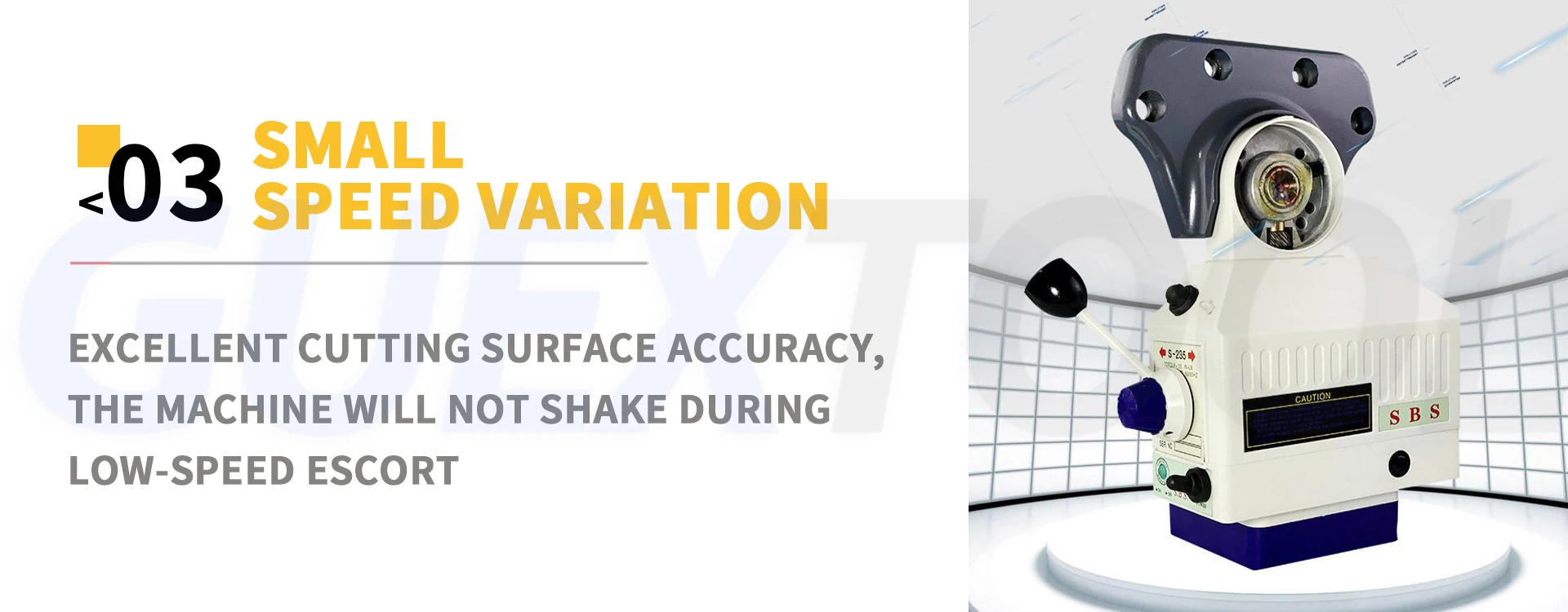 GUYX milling machine automatic feed, also known as milling machine power feed, is a device that provides feed power to the milling machine worktable. It generates power by driving a motor, which is then transmitted through gears in the gearbox to convert the motor's high speed and low torque into low speed and high torque suitable for worktable feeding. The worktable is then driven by connecting components to perform linear motion in the X, Y, and Z axes, achieving automatic cutting. The operator can adjust the motor speed and feed direction through the control circuit and variable speed handle to meet different processing requirements.