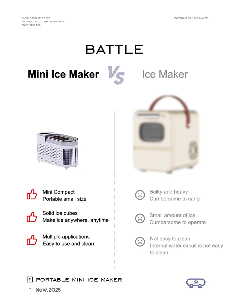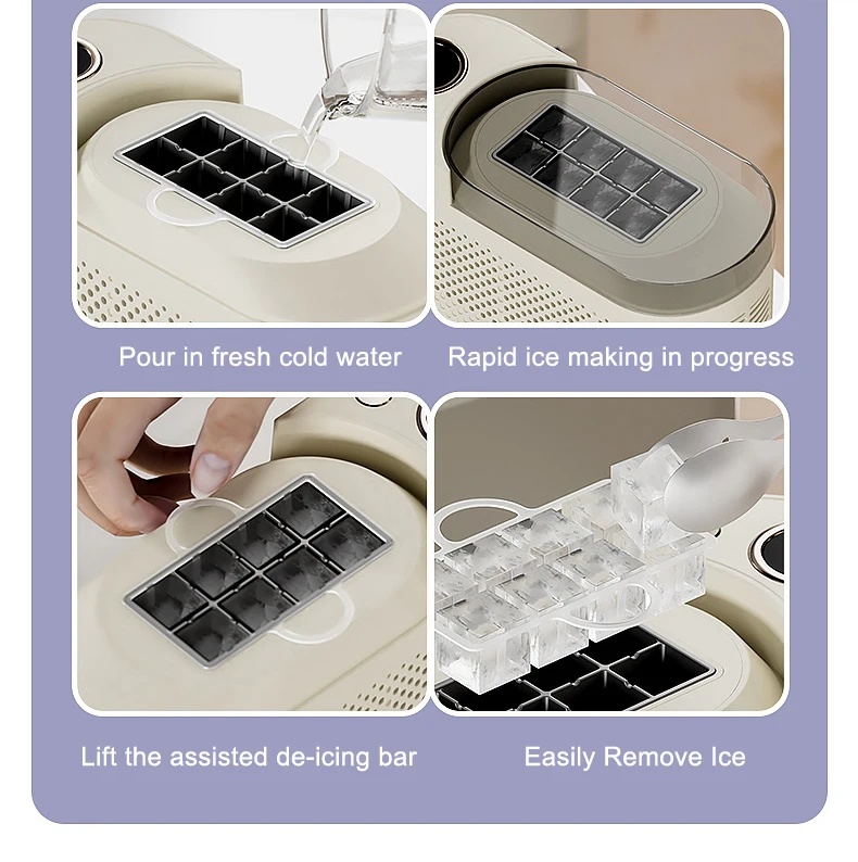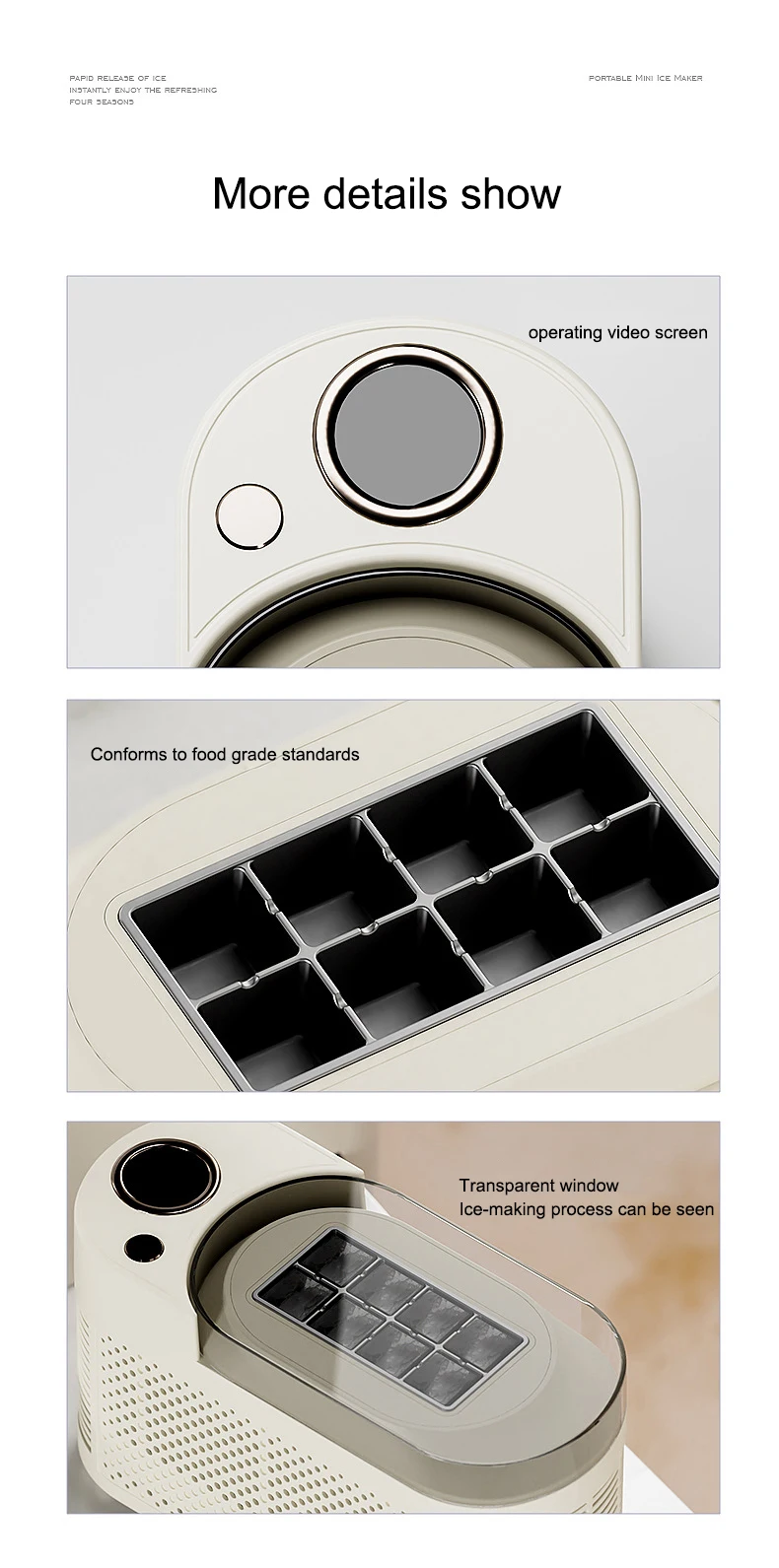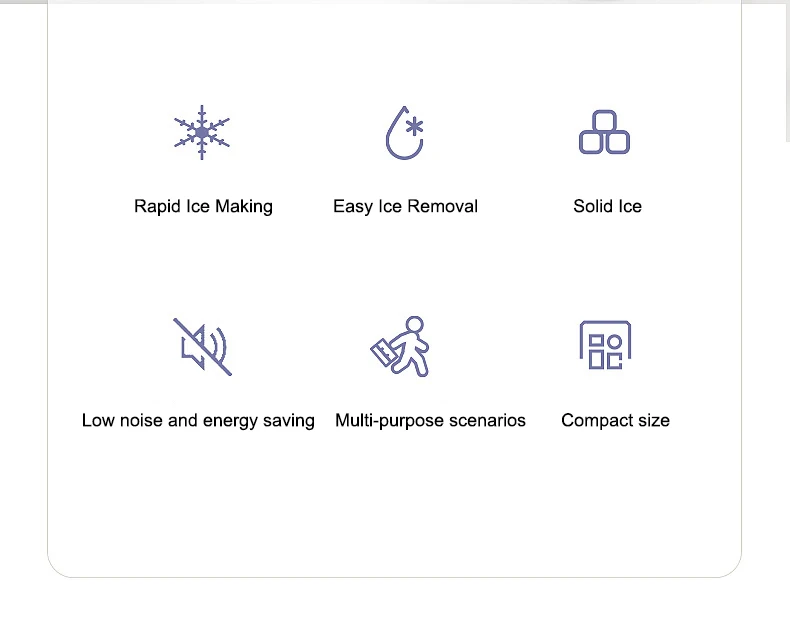 3. Applicable Occasions: Whether you are hosting a party, enjoying a cool drink at home, or need ice while camping, this desktop ice maker is your practical pick. Its high efficiency performance allows you to easily prepare iced beverages and keep snacks cool