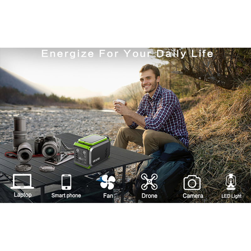 A powerful 40000mAh portable power station with AC outlets, the weight of only 3.3 lbs with dimensions of 6.7 x 4.1 x 4.5 inch / 17 x 10.5 x 11.5 cm. Equipped with an easy-carry handle, very convenient for your mini refrigerators, CPAP machines, etc, during off-grid camping, vacations, travels, road trips, hunting adventures, or emergency power outages.