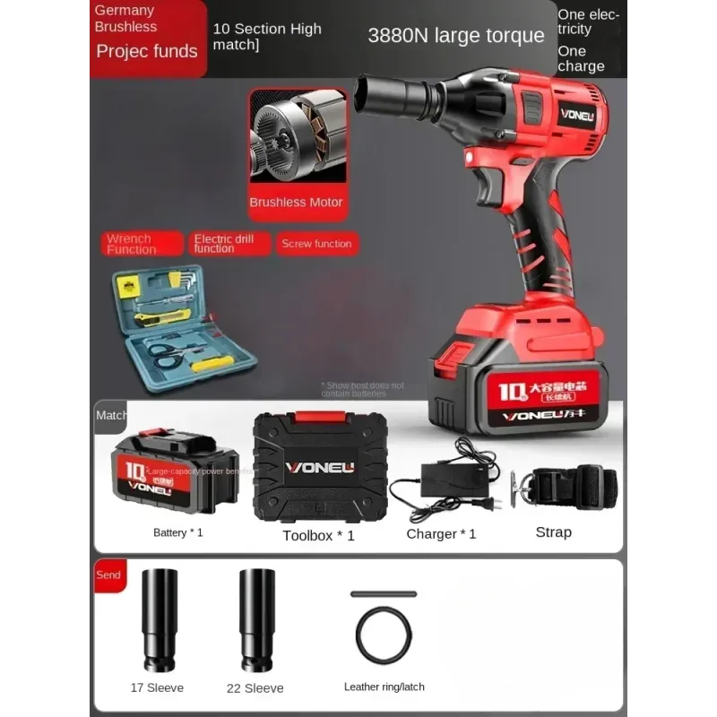 110V/220V Professional German Electric Wrench with High Torque Brushless Lithium Battery and Impact Wrench for Powerful DD