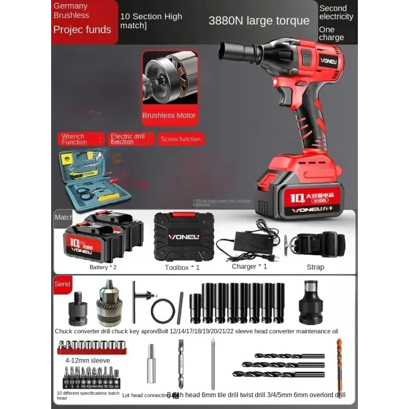 110V/220V Professional German Electric Wrench with High Torque Brushless Lithium Battery and Impact Wrench for Powerful DD