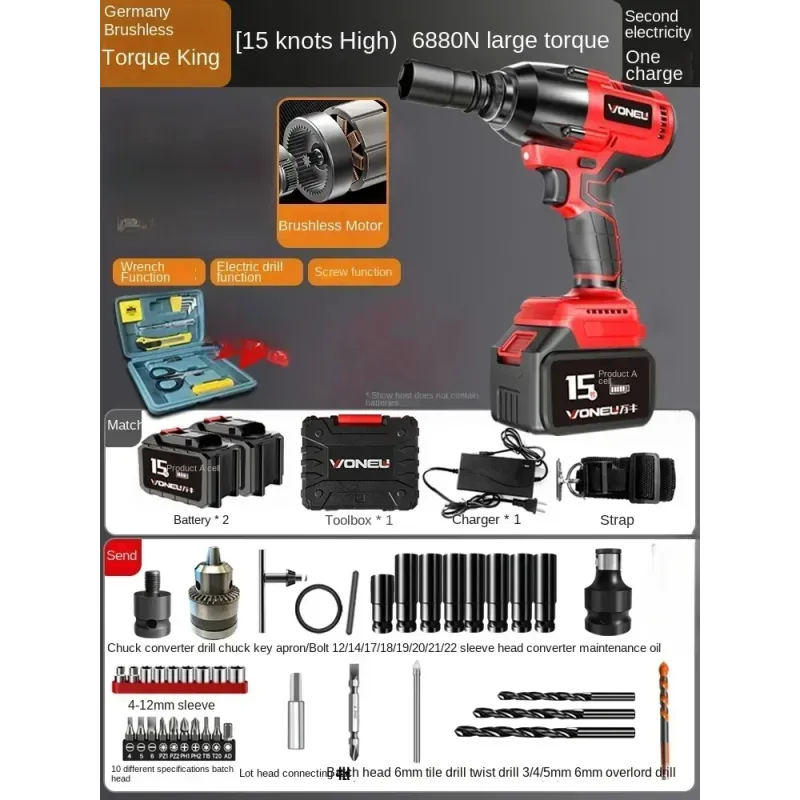 110V/220V Professional German Electric Wrench with High Torque Brushless Lithium Battery and Impact Wrench for Powerful DD