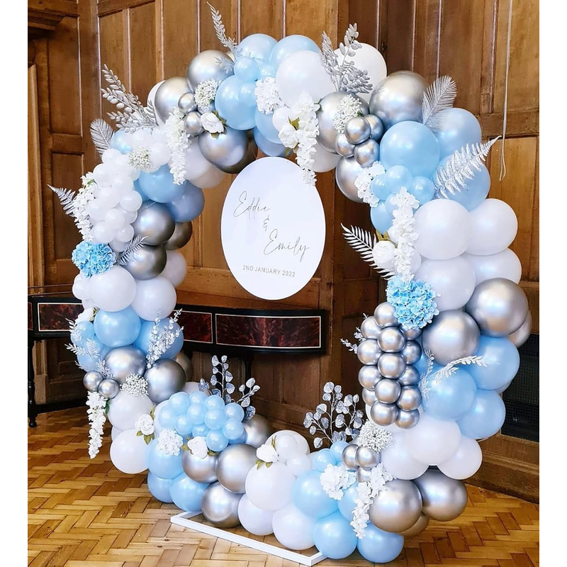 112Pcs Blue And White Balloons Arch Kit Blue Balloon Garland Kit Silver Balloons for Baby Shower Birthday Party Wedding Decor