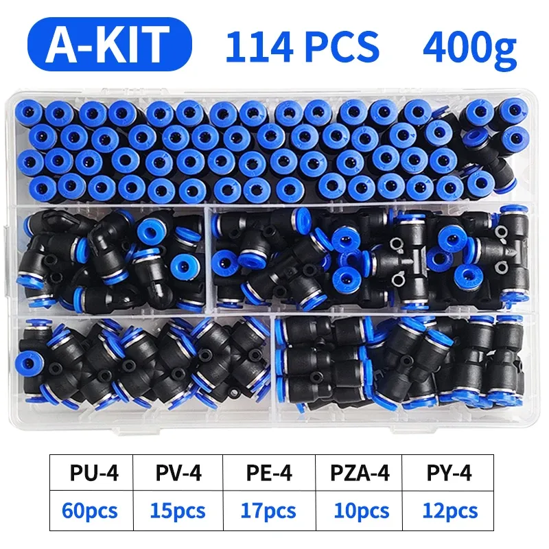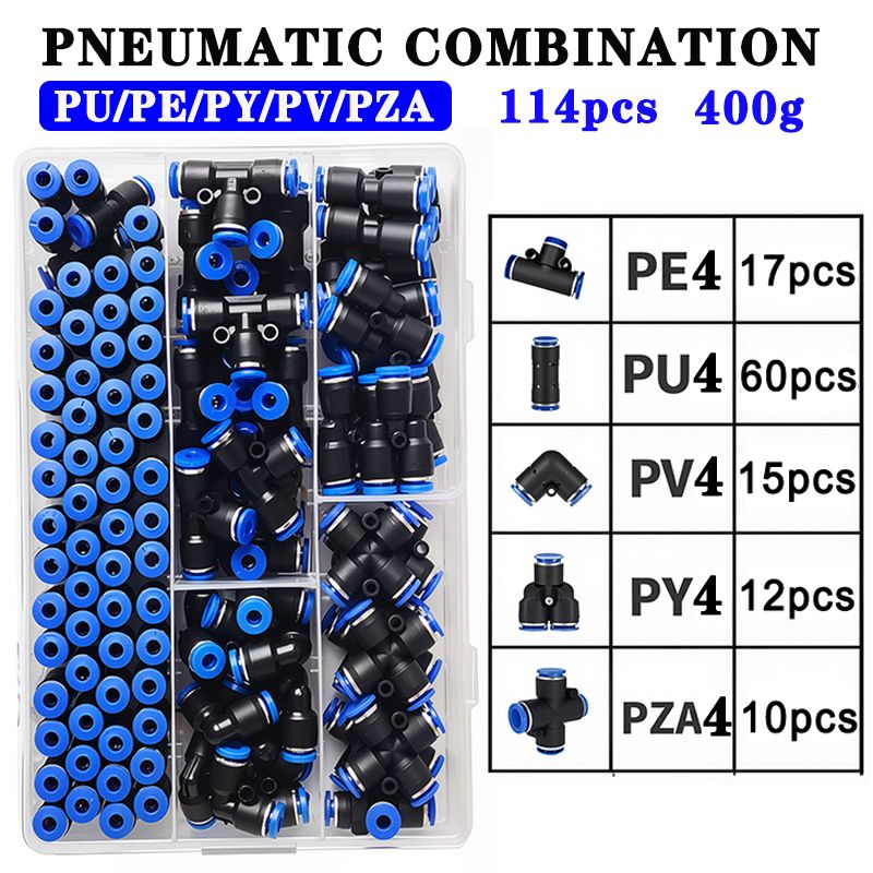 114Pcs/Box 4mm PU-4/PE-4/PZA-4/PY-4/PV-4/PG-4 Pneumatic Connectors Kit Quick Release Air Compressor Parts Hose Pipe Tube