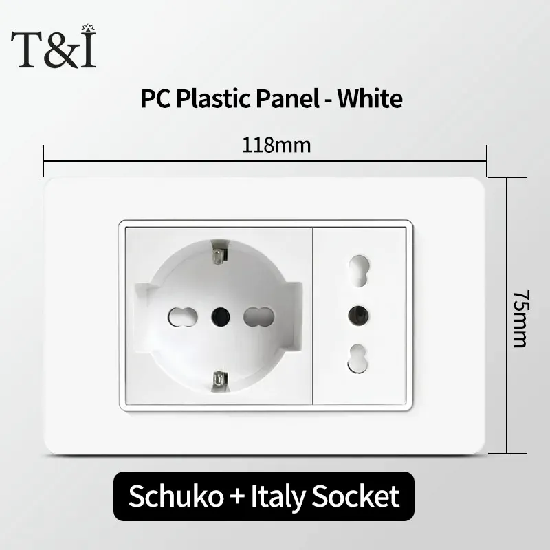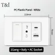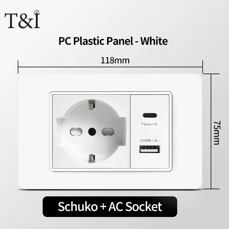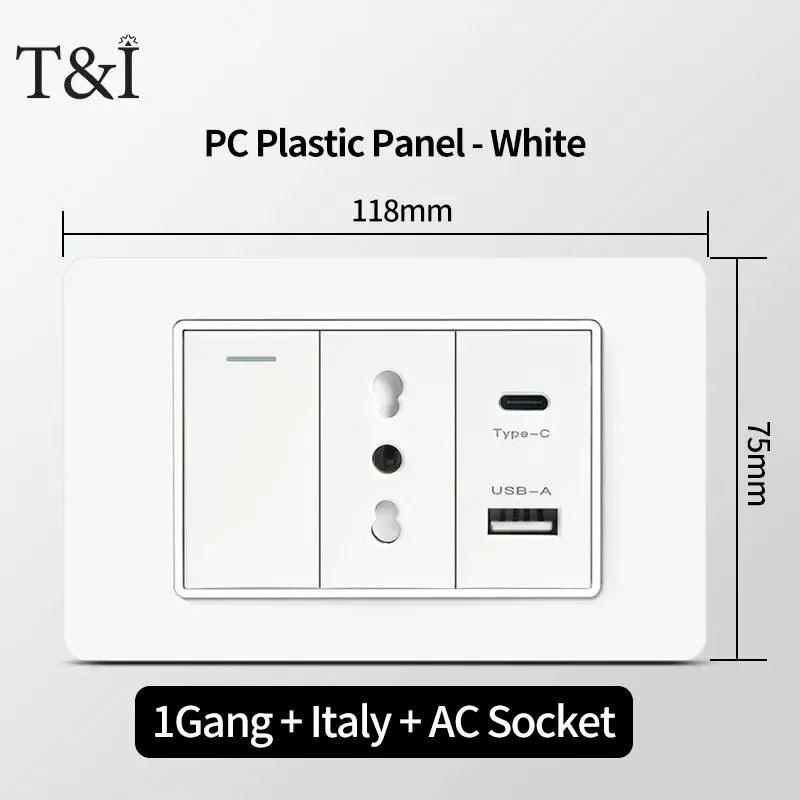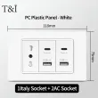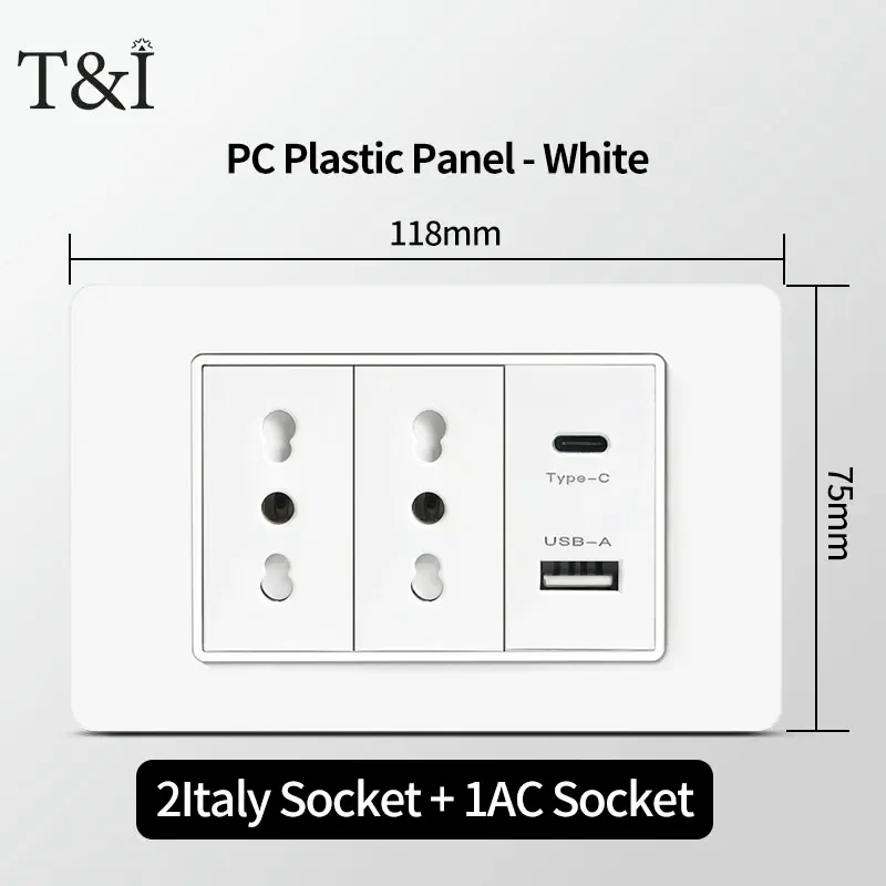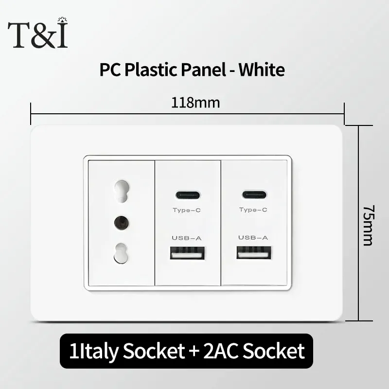 118 PC Panel Chile Plug 16A Smart Wall Socket USB Type-C 20W Fast Charging Home Office Italian EU Power Outlet White Retardant