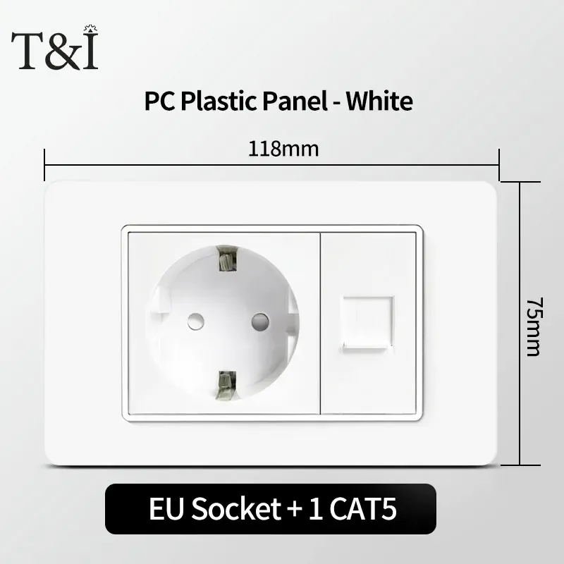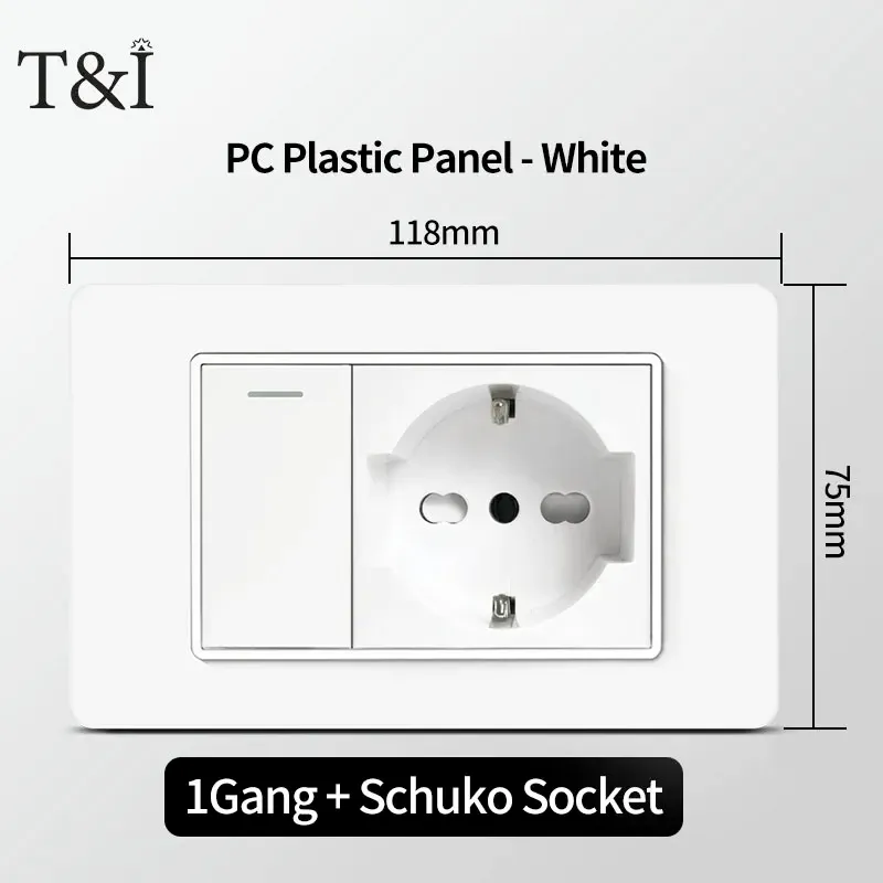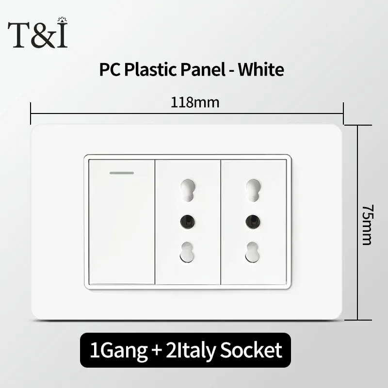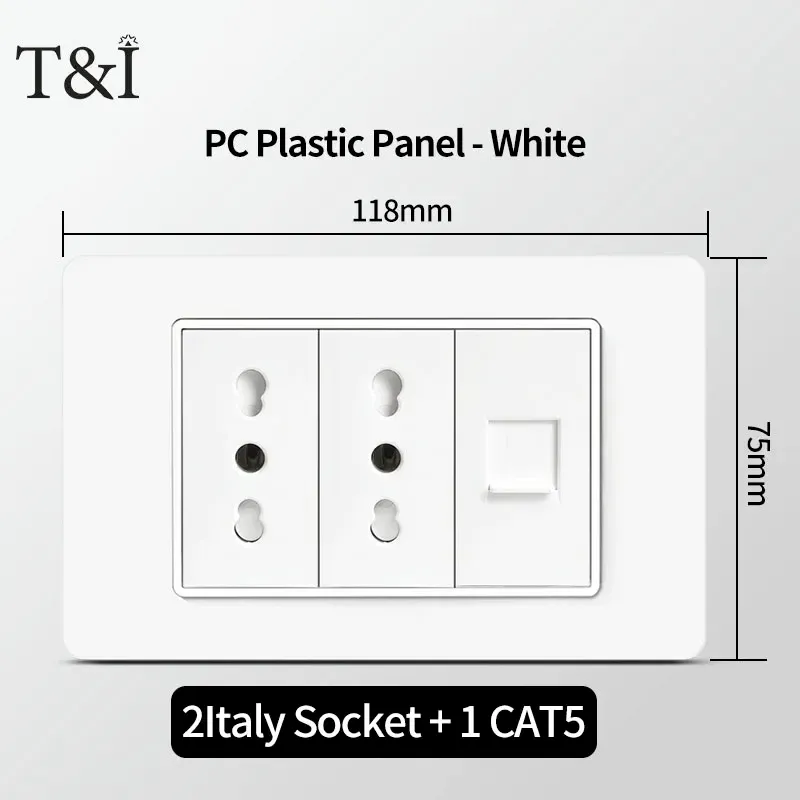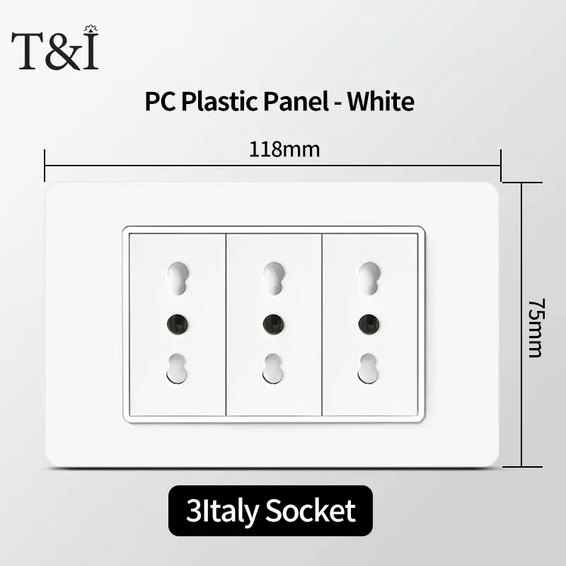 118 PC Panel Chile Plug 16A Smart Wall Socket USB Type-C 20W Fast Charging Home Office Italian EU Power Outlet White Retardant