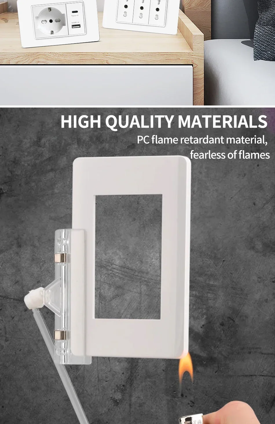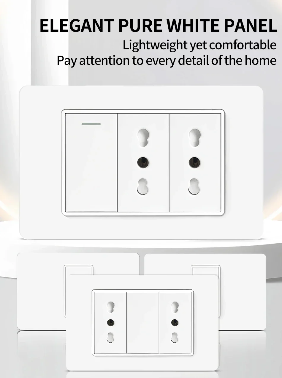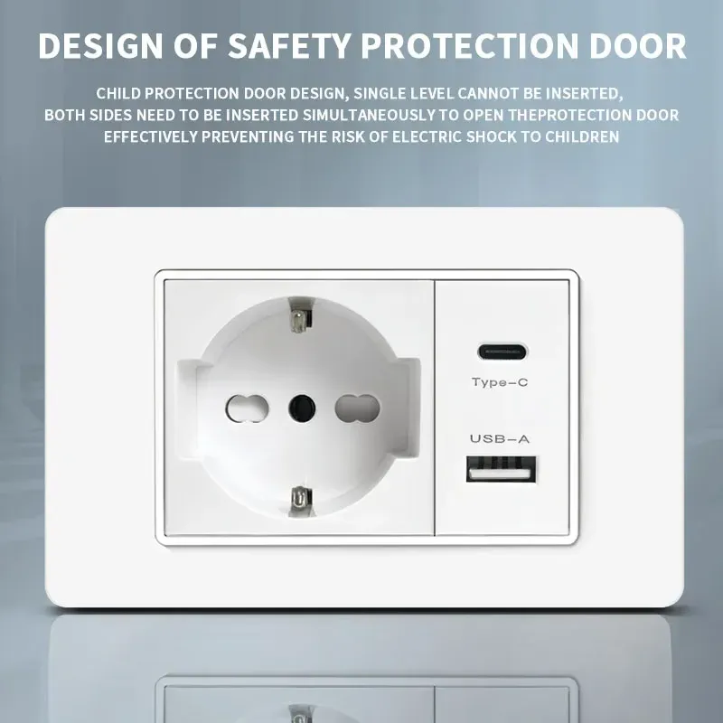 118 PC Plastic Panel Socket USB Type-C 20W Fast Charging Italy Chile Smart Wall Outlet Plug White Light Switch Home Office