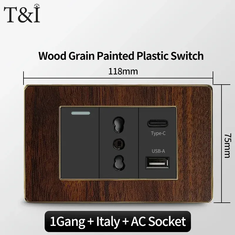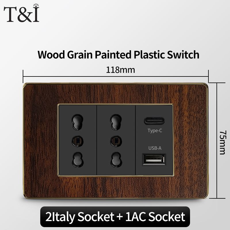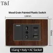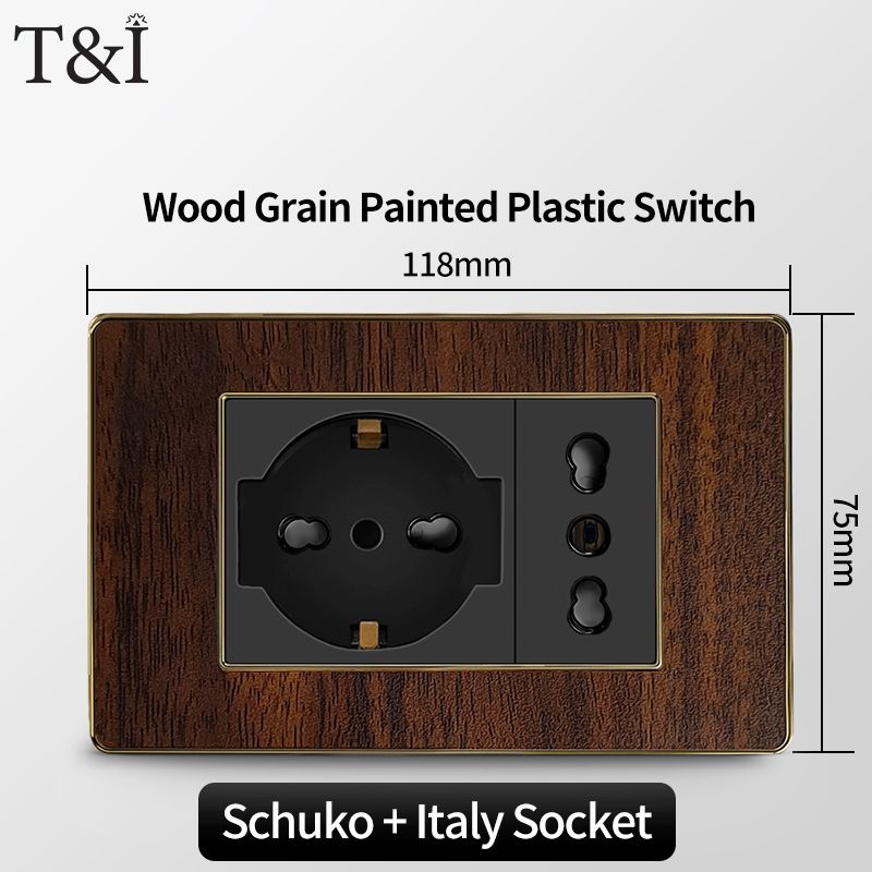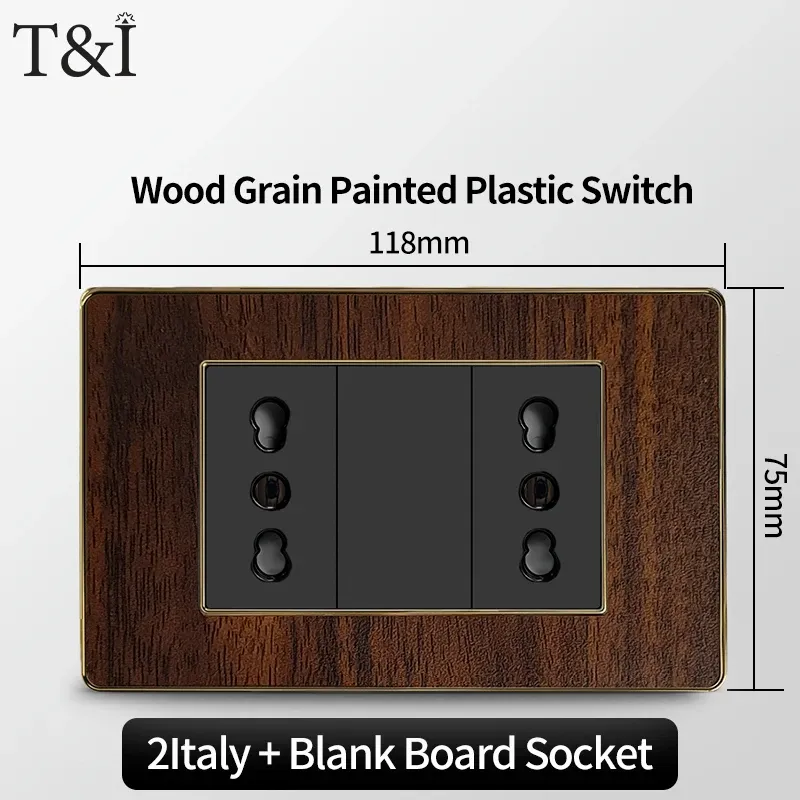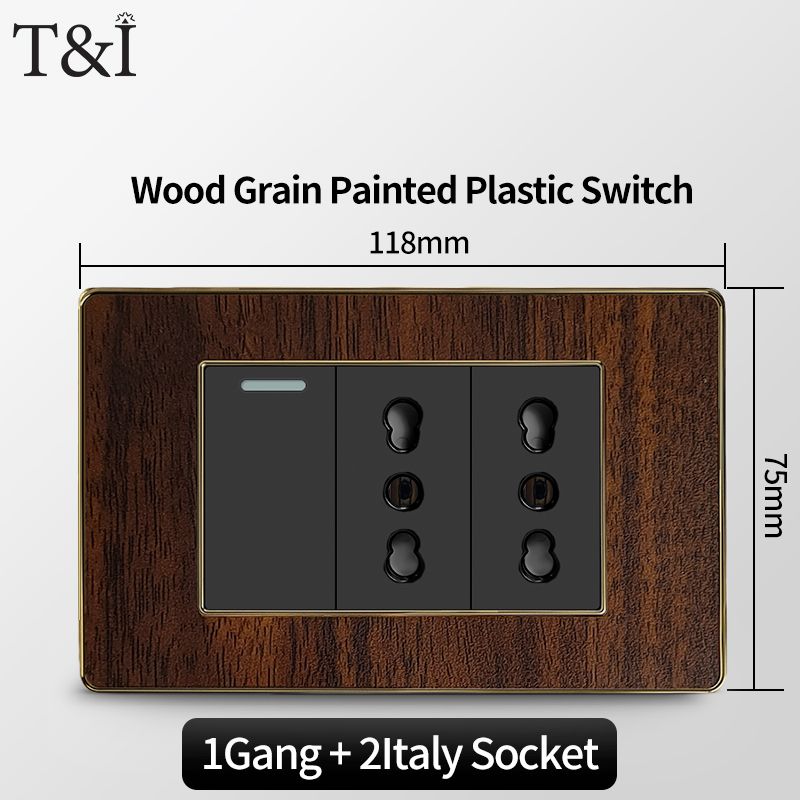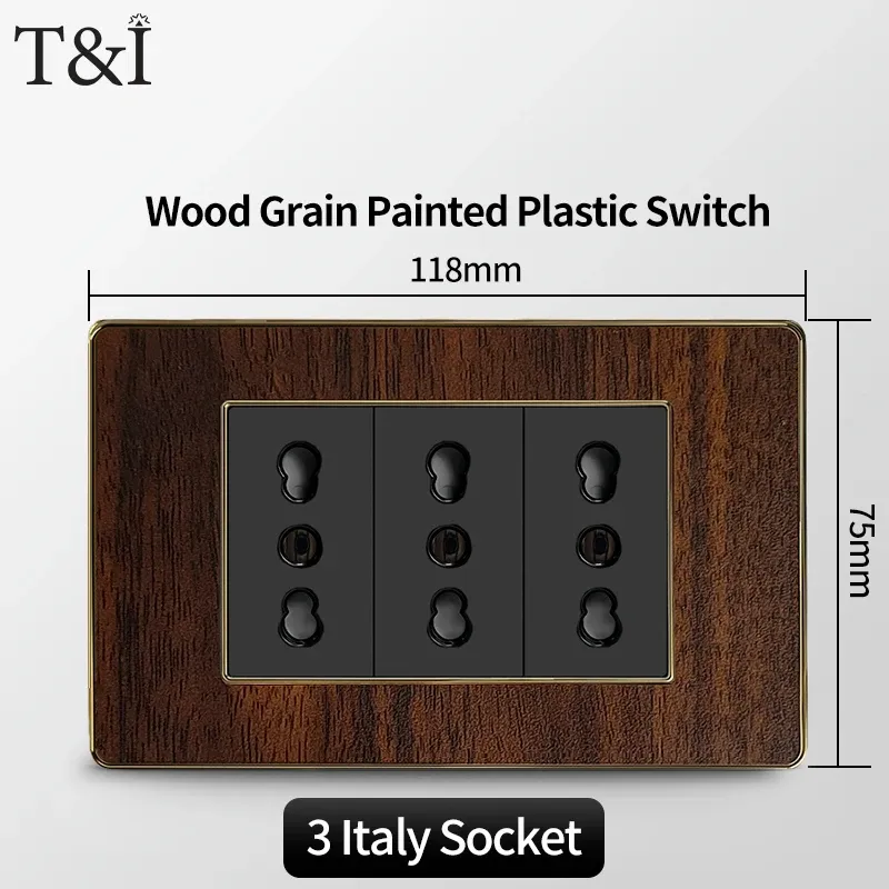 118 Type Black Wood Grain Style Switch and Socket Panel, Italian Standard Wall Plate Cover for Bedroom, Office Home Upgrade