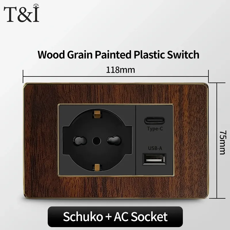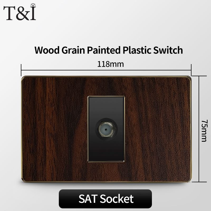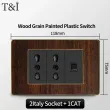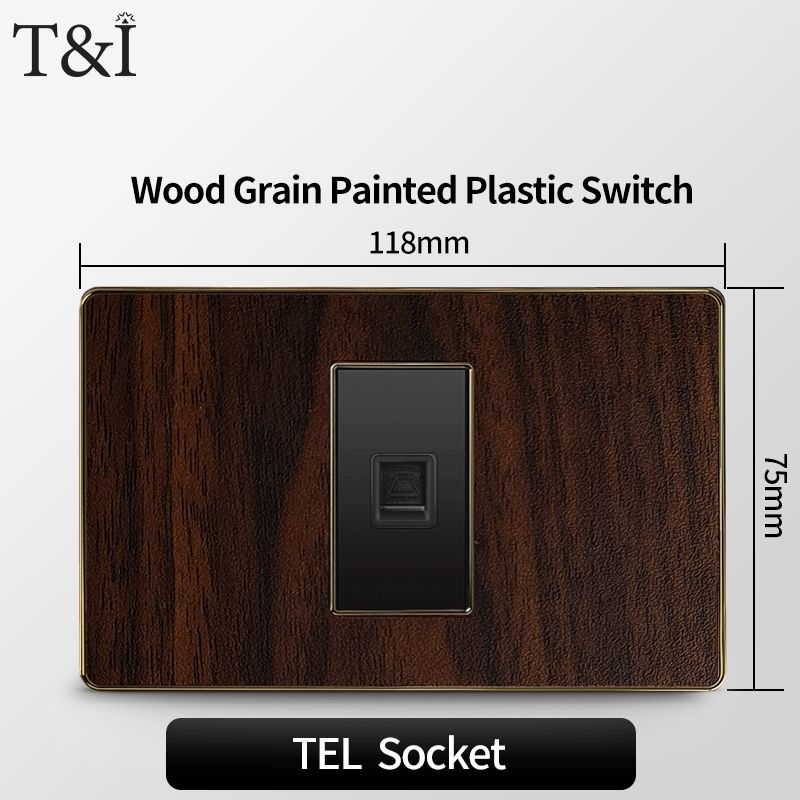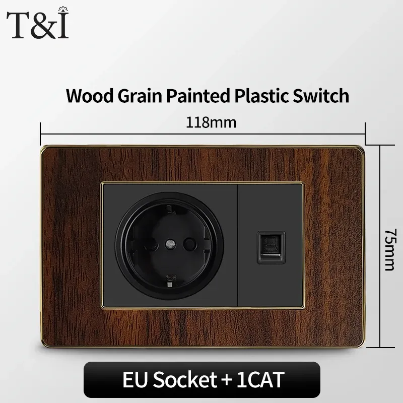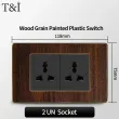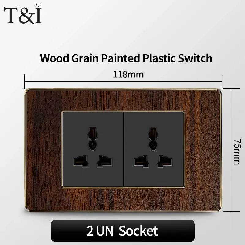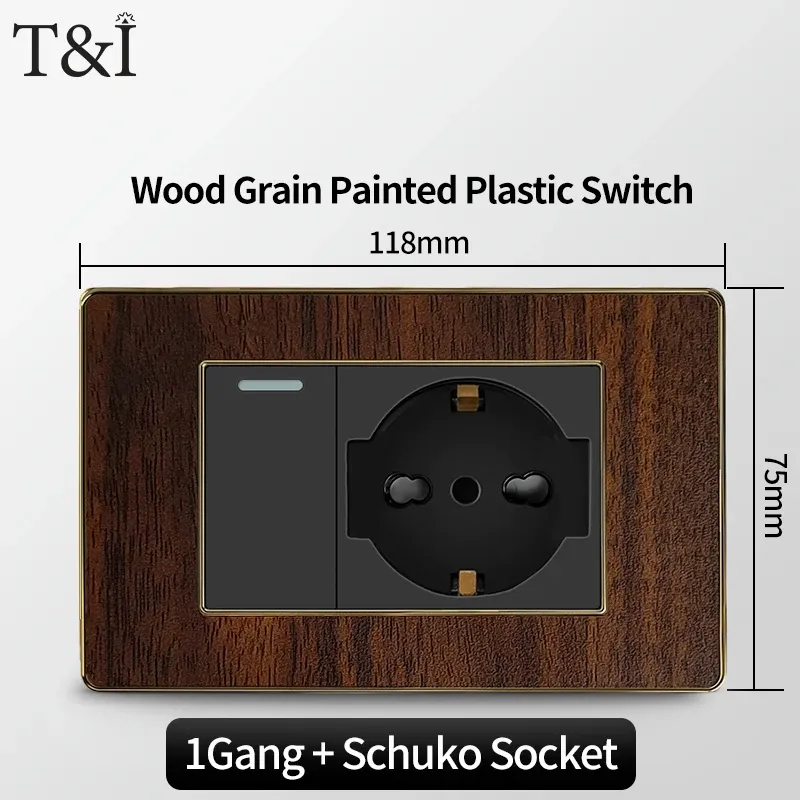 118 Type Black Wood Grain Style Switch and Socket Panel, Italian Standard Wall Plate Cover for Bedroom, Office Home Upgrade