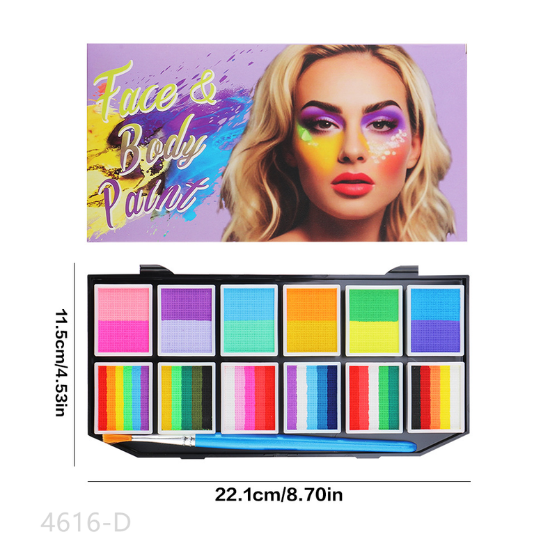 12 Grid Face Body Painting Set Water-Soluble Rainbow Palette for Children's Adults Halloween Carnival Cosplay Party Makeup Kit