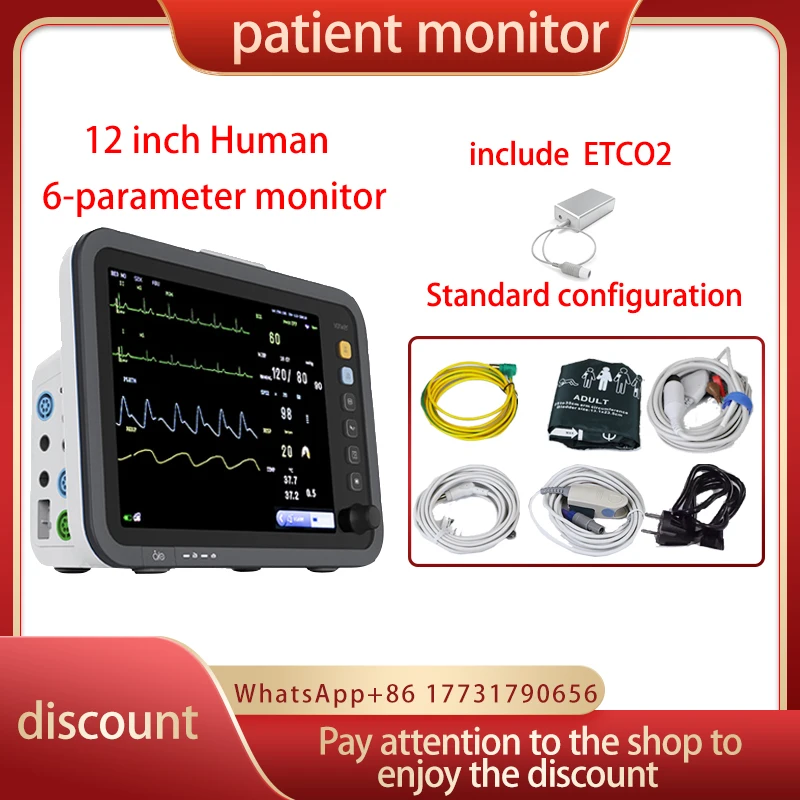 12 inch thin screen human 6-parameter monitor ECG/NIBP/PR/SPO2/RESP/TEMP patient monitor vital signs monitor