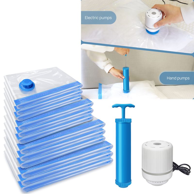 Assorted Sizes for All Storage Needs: Our set includes 12 vacuum storage bags in 4 sizes, from Extra Large vacuum bags for bulky items like duvets to small vacuum storage bags for everyday use. Versatile and practical, they cater to all your storage and travel needs.