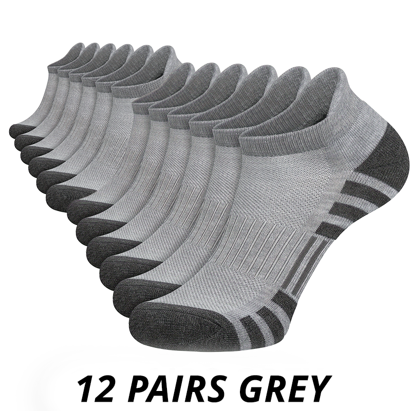 12 Pairs Men's Mesh Breathable Sports Ear Lifting Socks All Season Solid Color Low Cut Casual Mens Short Tube Socks