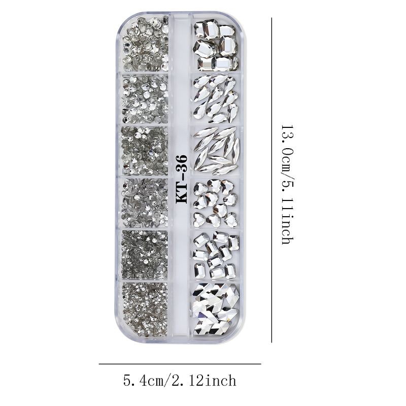 12 palace grid / 1 box of transparent plating bottom nail water diamond heart, water drop, and other size mixed nail flat bottom