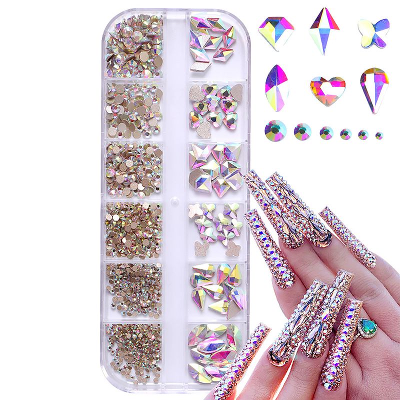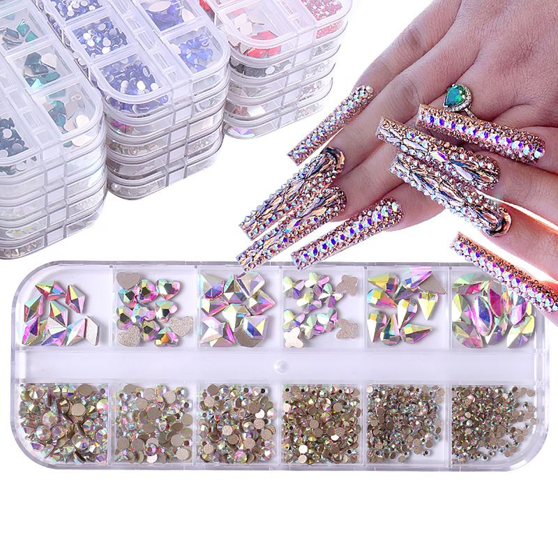 12 palace grid / 1 box of transparent plating bottom nail water diamond heart, water drop, and other size mixed nail flat bottom