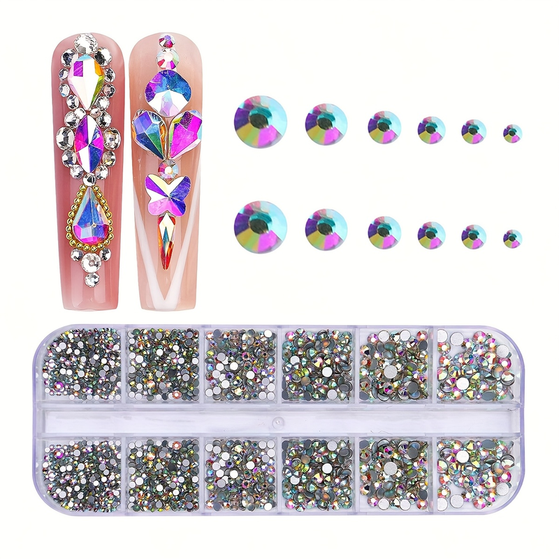 12 palace grid / 1 box of transparent plating bottom nail water diamond heart, water drop, and other size mixed nail flat bottom