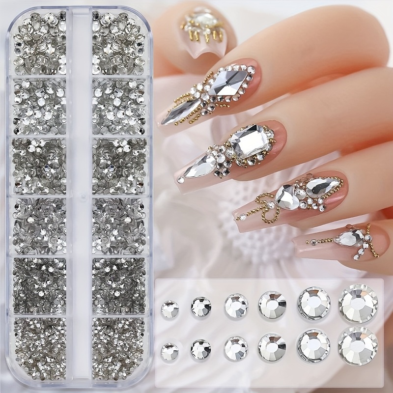 12 palace grid / 1 box of transparent plating bottom nail water diamond heart, water drop, and other size mixed nail flat bottom