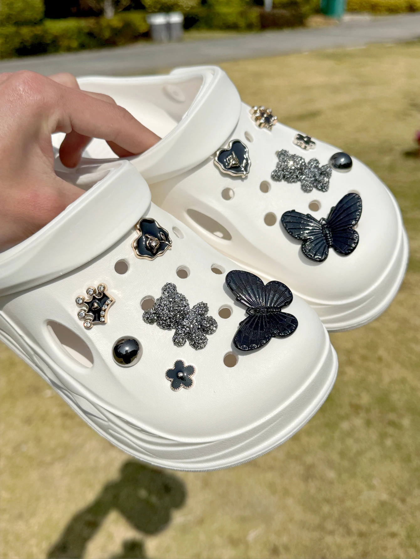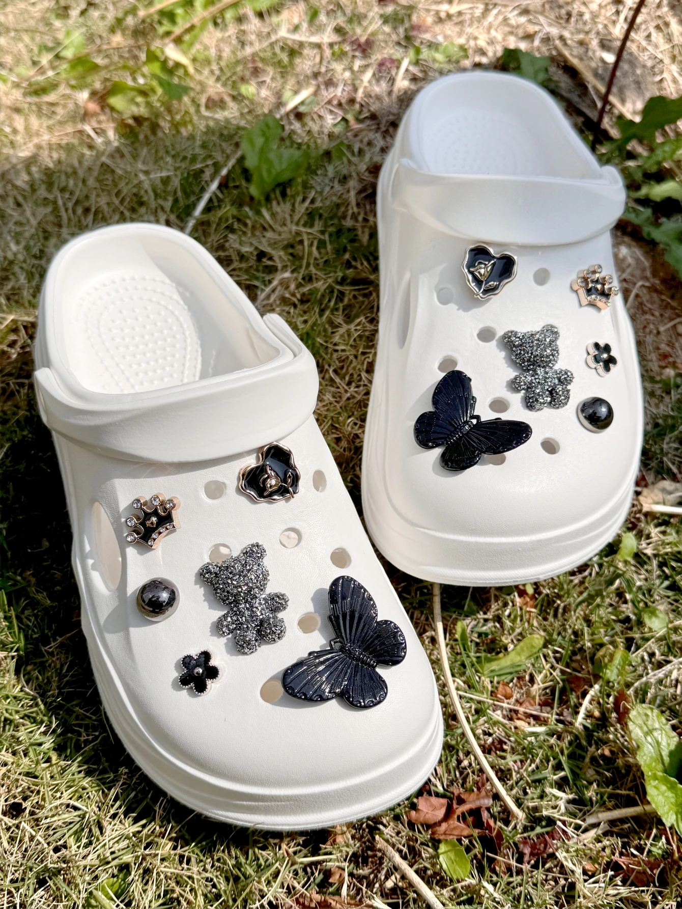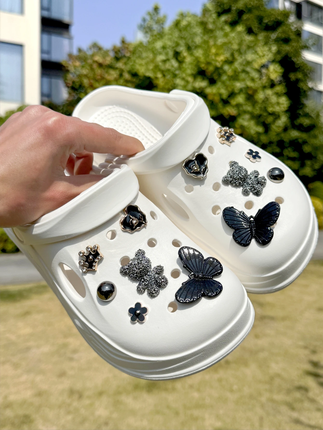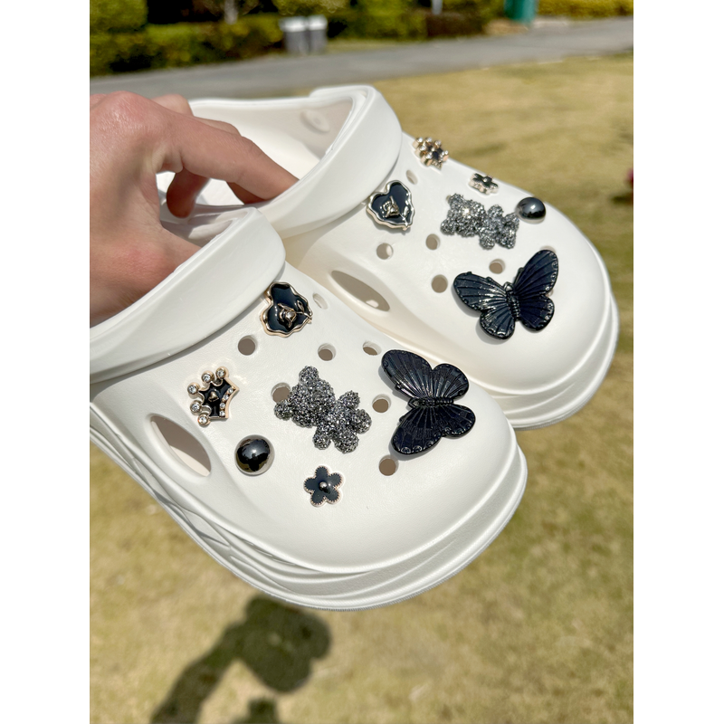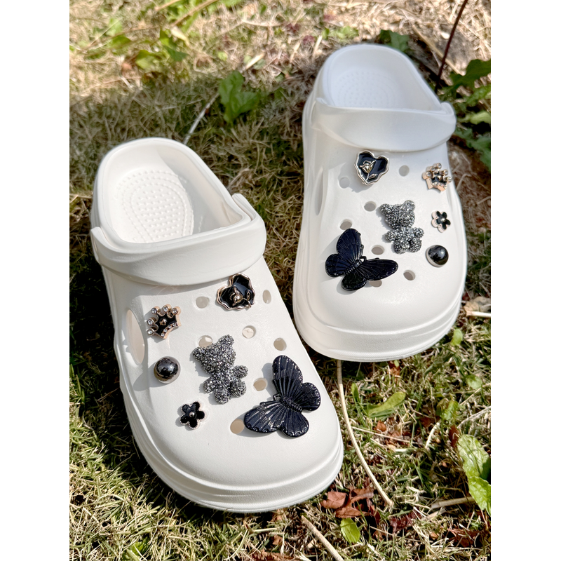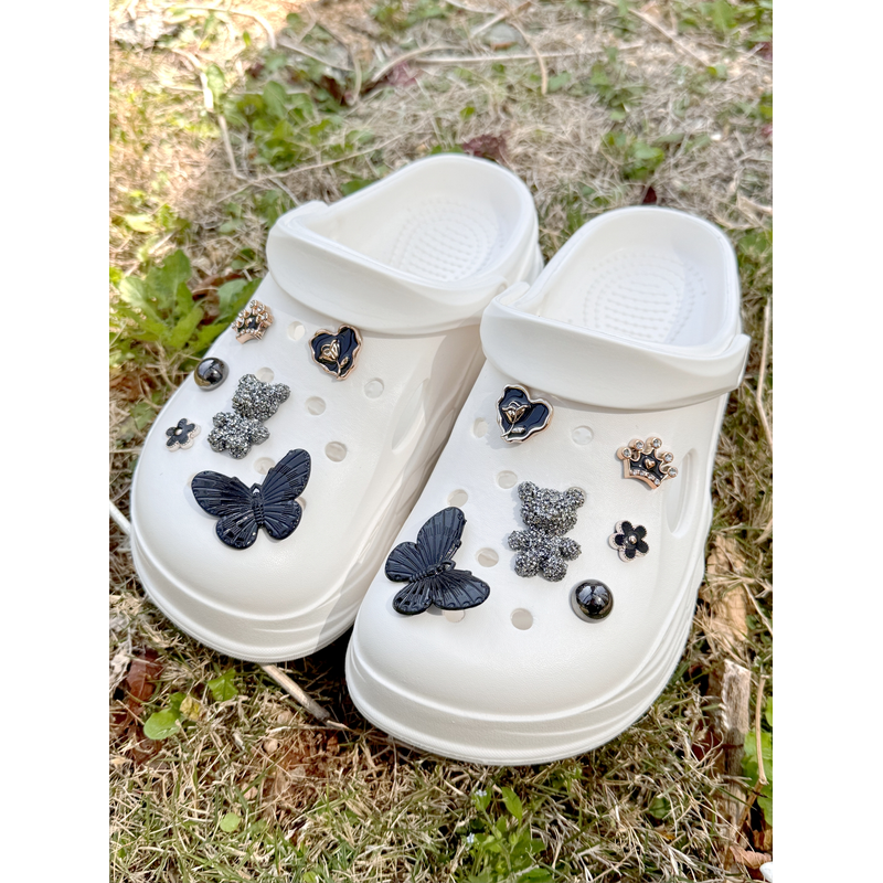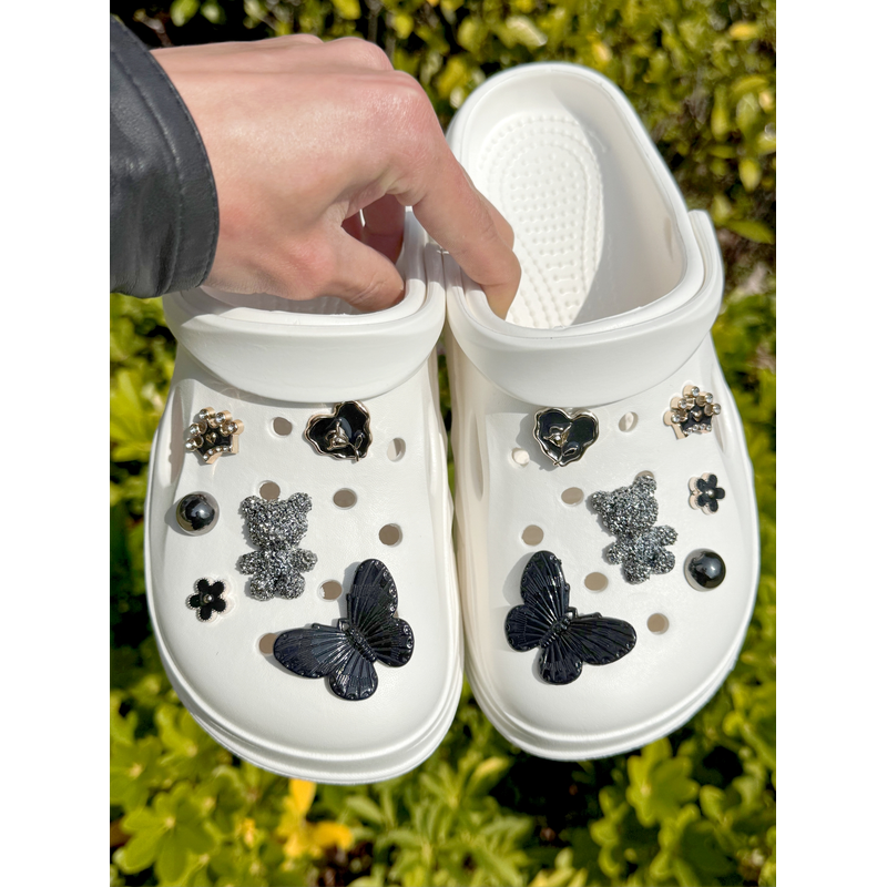 Featuring an alligator shoe design with shredded diamond bear butterfly flower crown, these decorations offer a unique and creative touch.