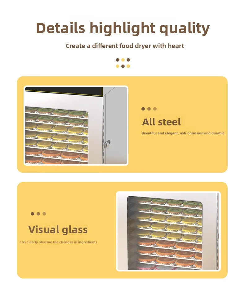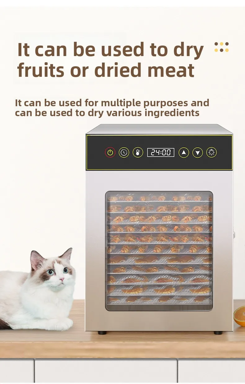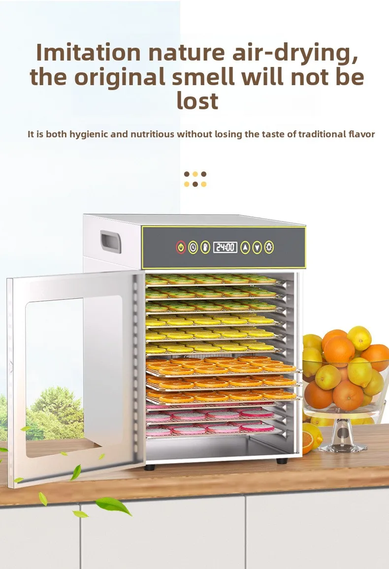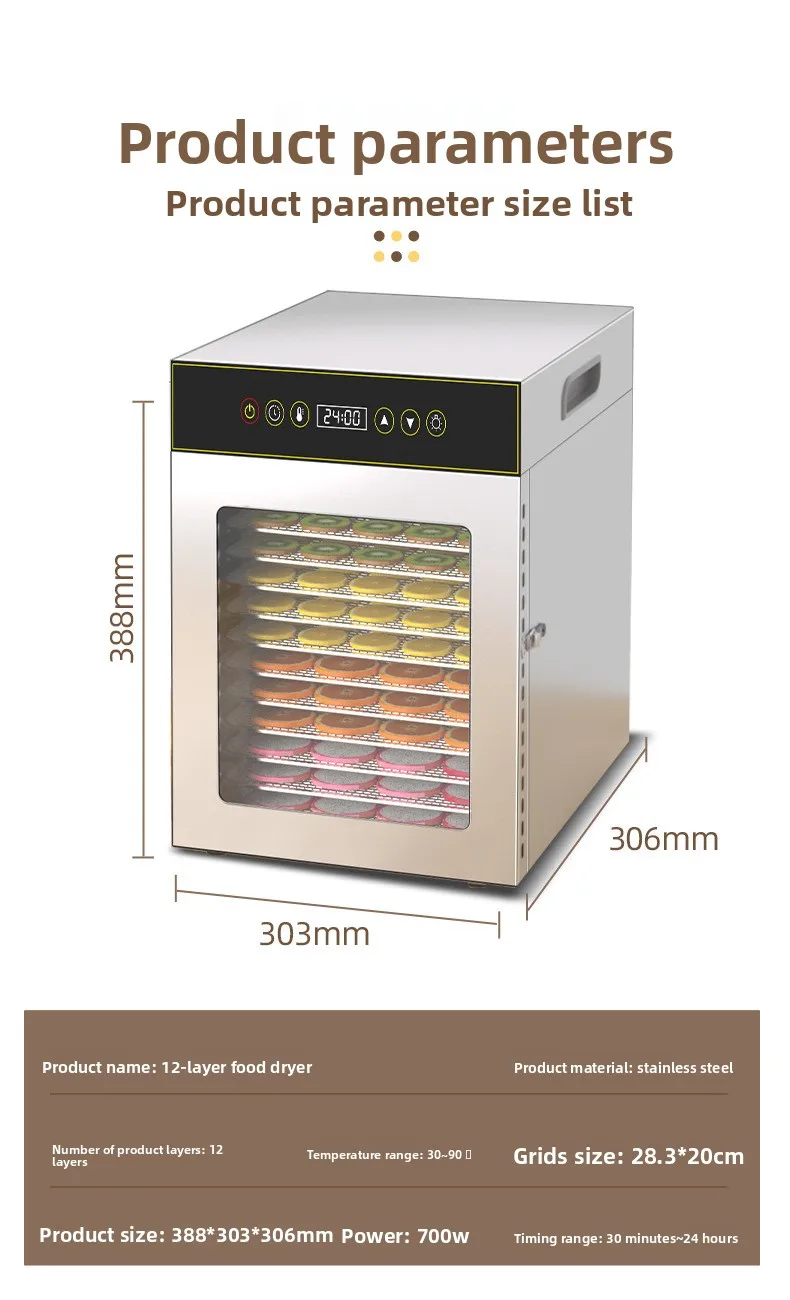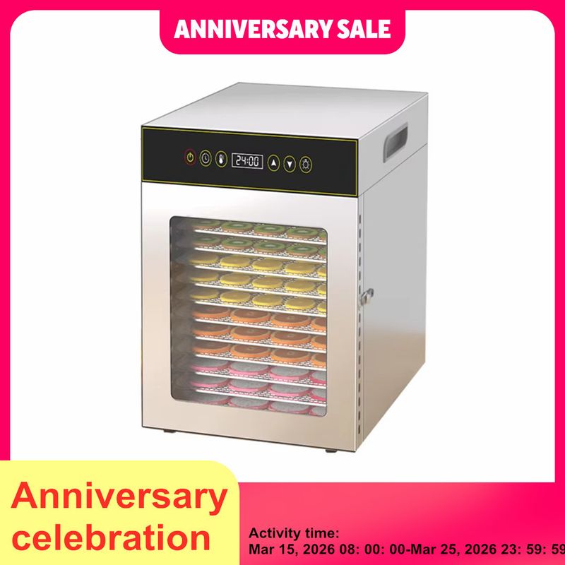 12-Tier Commercial & Home Food Dehydrator, 750W Stainless Steel Drying Machine for Fruits/Meat/Herbs, Adjustable Timer & Temp