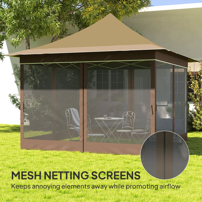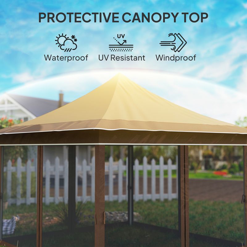 12 X 12 Ft. Canopy Tent With Mesh Netting, Up Tent With Carry Bag For Garden, Patio, Beige