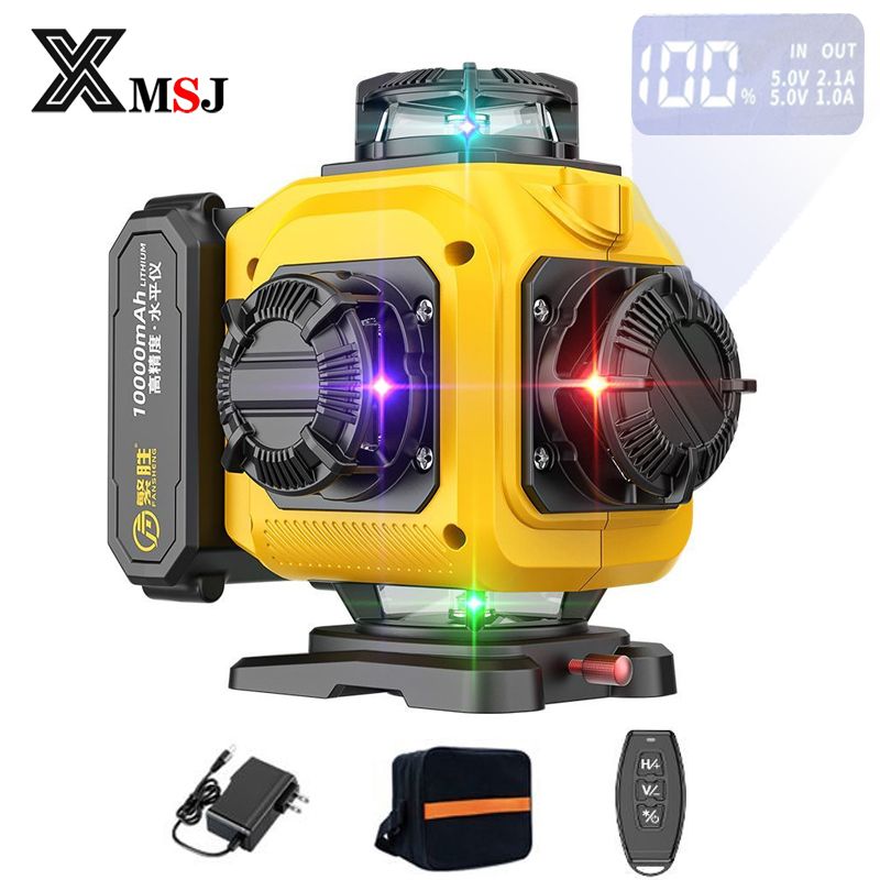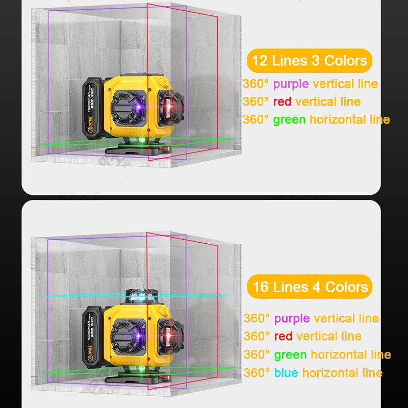 12/16 Lines 3D/4D Laser Level Remote Control 4 Colors Beam 360° Horizontal & Vertical Powerful Lines Laser Levels Power Display