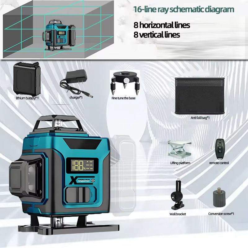 12/16 Lines 3D/4D Laser Level With Digital Display Self-leveling Horizontal And Vertical Super Powerful Green Beam Laser Levels