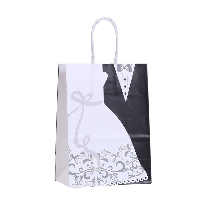 12/24Pcs Bride And Groom Paper Gift Bag With Handle Wedding Dress Candy Favor Portable Packaging Bag Engagement Party Decoration