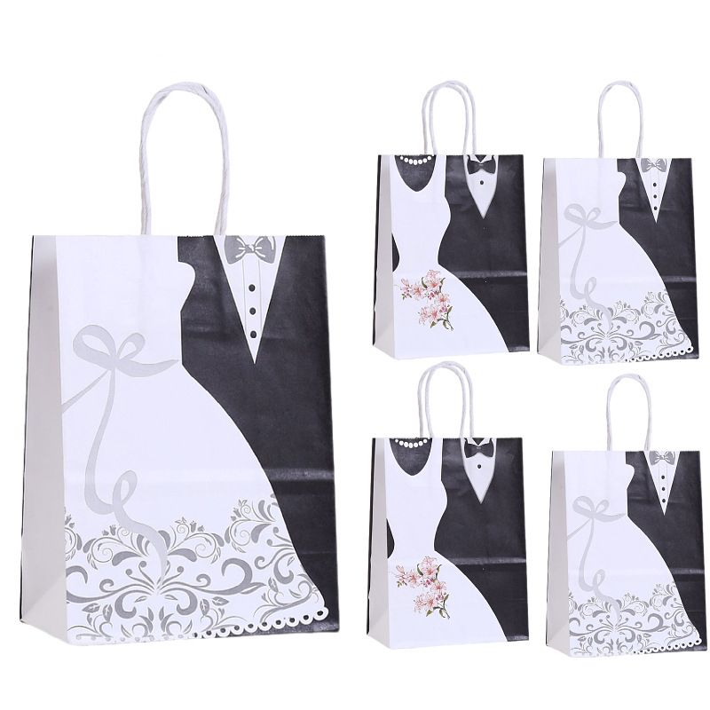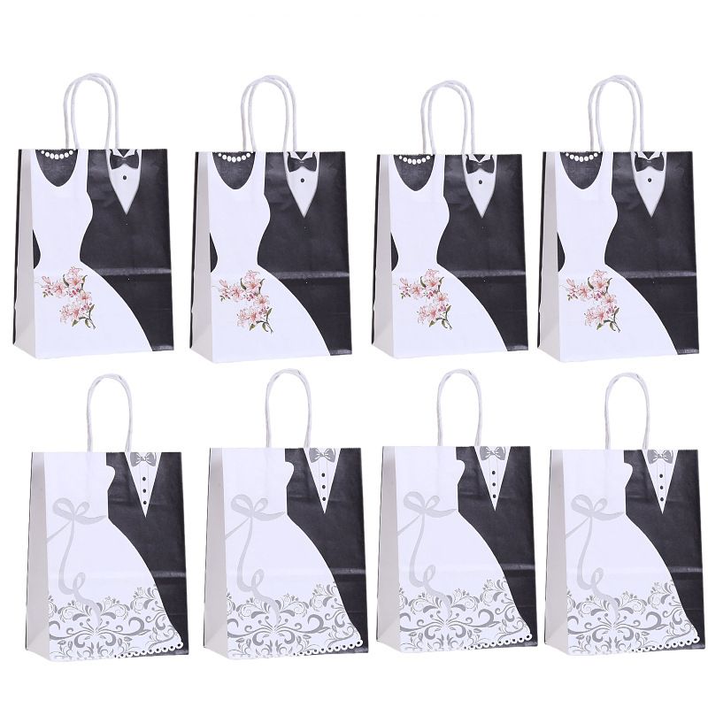 12/24Pcs Bride And Groom Paper Gift Bag With Handle Wedding Dress Candy Favor Portable Packaging Bag Engagement Party Decoration
