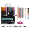 12/24Pcs Metallic Glitter Colors Gel Pens & Pen Refills For School Office Adult Coloring Book Journals Drawing Art Markers