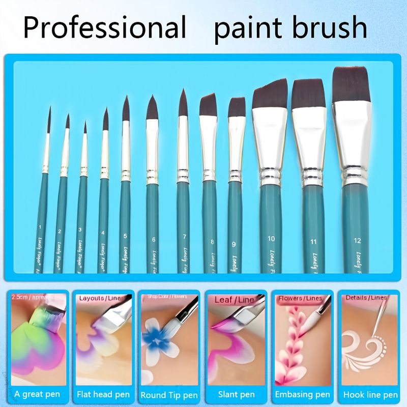 12/24pcs Professional Face Painting Brush Set, with Premium Nylon Bristles for Stage Makeup, Petal, Dome Tips, Embossing & Linework