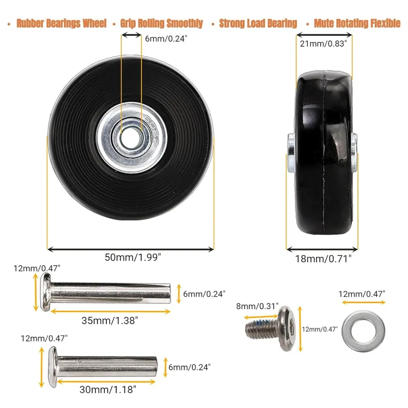12/24Pcs/Set Suitcase Parts Axles Dia40mm/50mm/60mm Silent Travel Luggage Wheels Casters Repair Replacement Axles Repair Kit