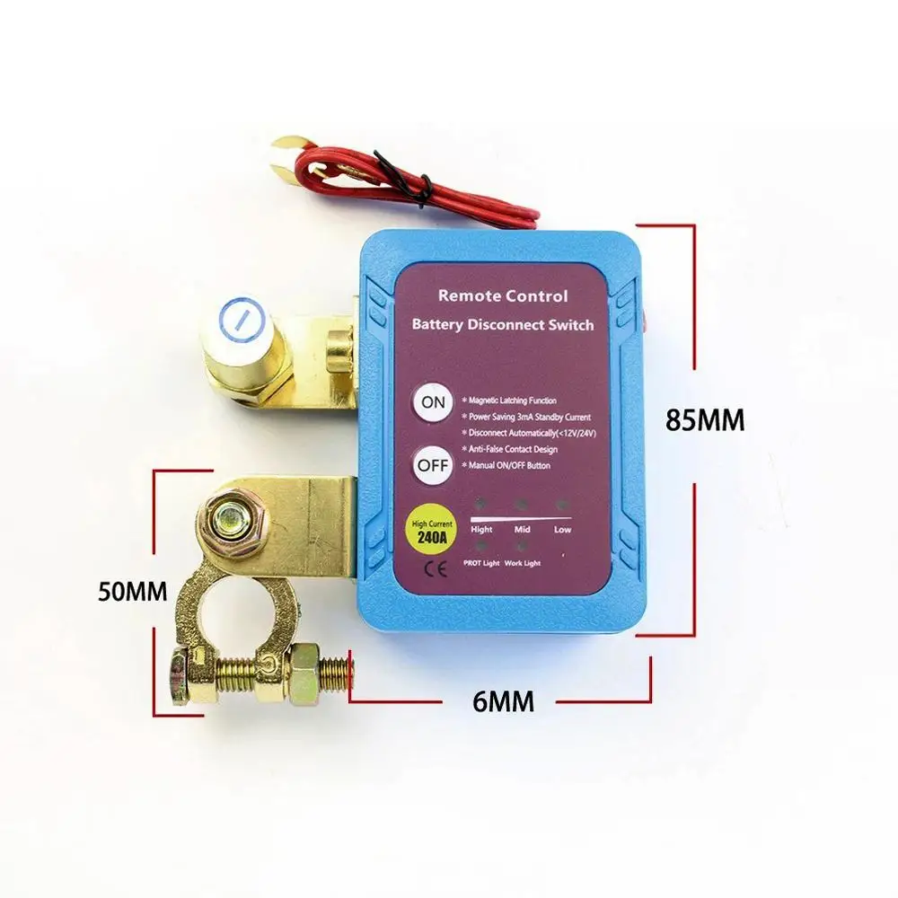 Specifications: Battery disconnect switch rated current: 240A, rated voltage: 12V, standby power consumption: 1mA, power-off threshold: 11.8V±0.2V, instantaneous current: 1000A for 30 seconds