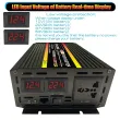 * 12000W-- [Pure Sine Wave] Converts 12V/24V/48V/60V DC to AC 220V household wall power with continuous 2000W output (12000W surge capability) with 1 AC receptacles, one LED Voltage display, high current DC terminals and two LED work lights. (Please make sure that the total rated power of the connected devices is ≤ 2000W).