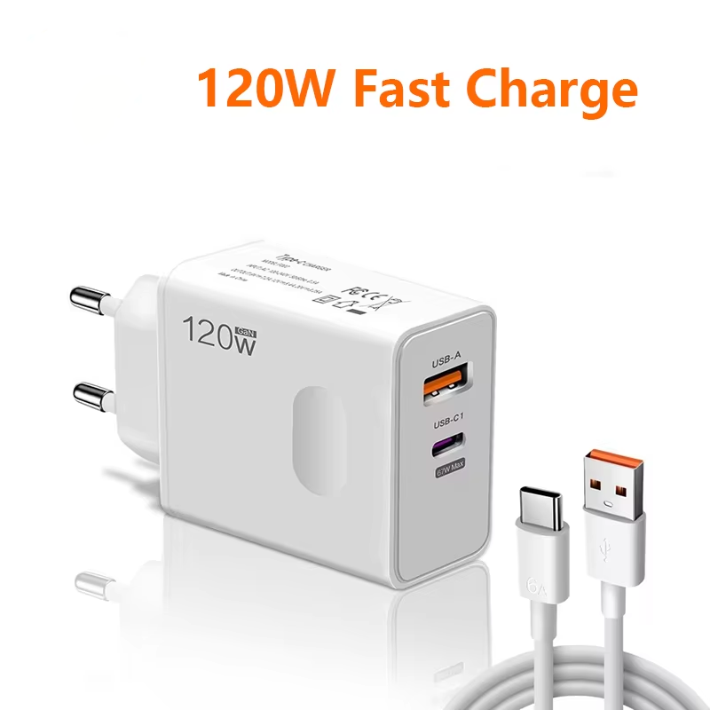 ≋120W Super Fast Charging Flash Charging EU/US/UK Mobile Phone Charger: A high-power charger designed specifically for users who pursue a fast charging experience, supporting multiple voltage and current outputs to meet the fast charging needs of different devices.