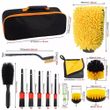 【14 Per Auto Detailing Brush Set】5 * Soft auto detailing brush in different sizes, 3 * drill brush attachment, 1 * car rim brush/wheel brush, 1 * car air conditioning brush, 2 * car polishing sponge polishing pad, 1 * microfiber car wash glove, 1 * Car microfiber cloth. The perfect car cleaning kit for all your cleaning needs