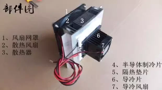 This thermoelectric cooler uses semiconductors to achieve good cooling effects.