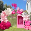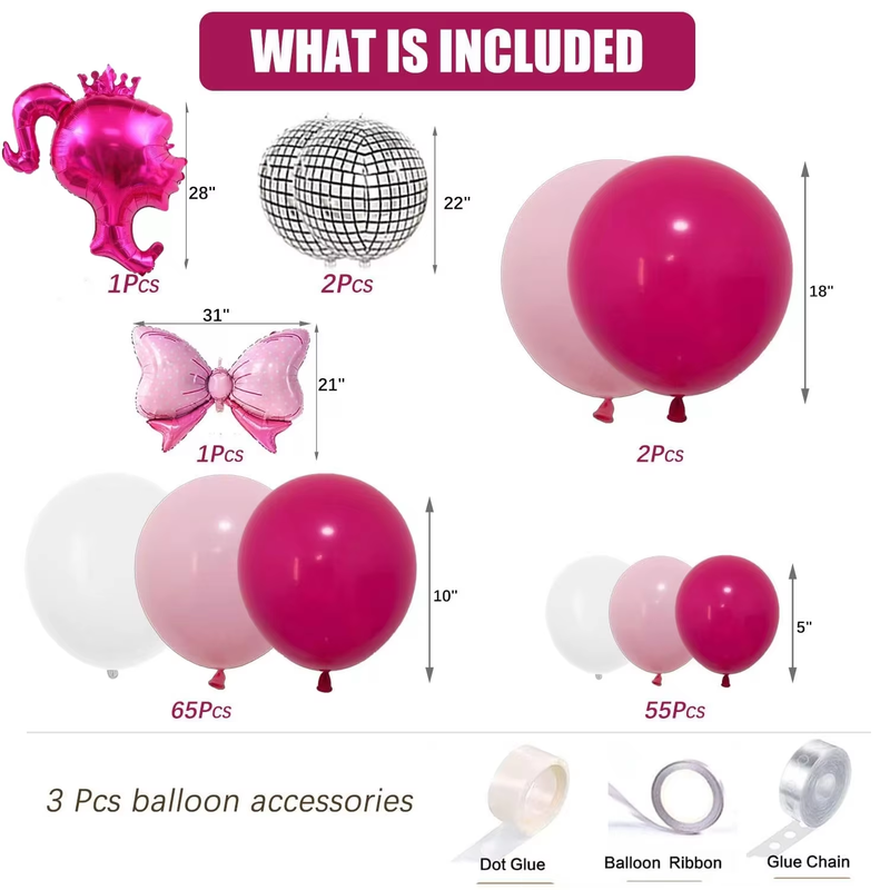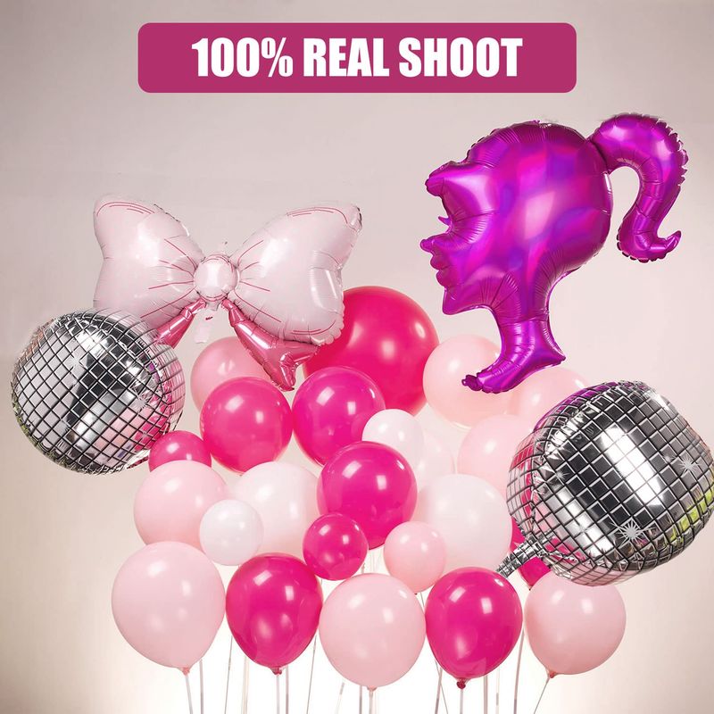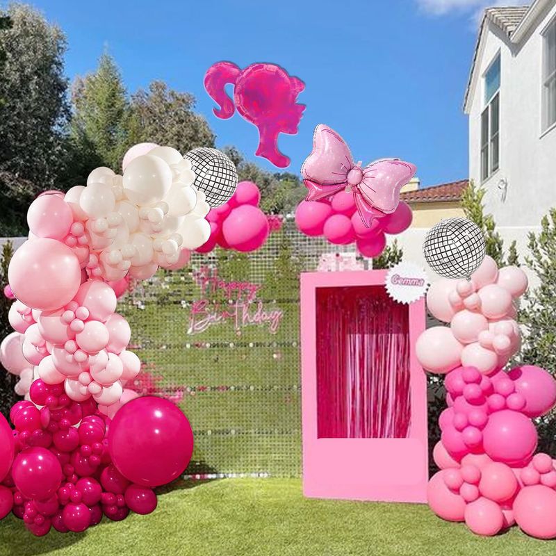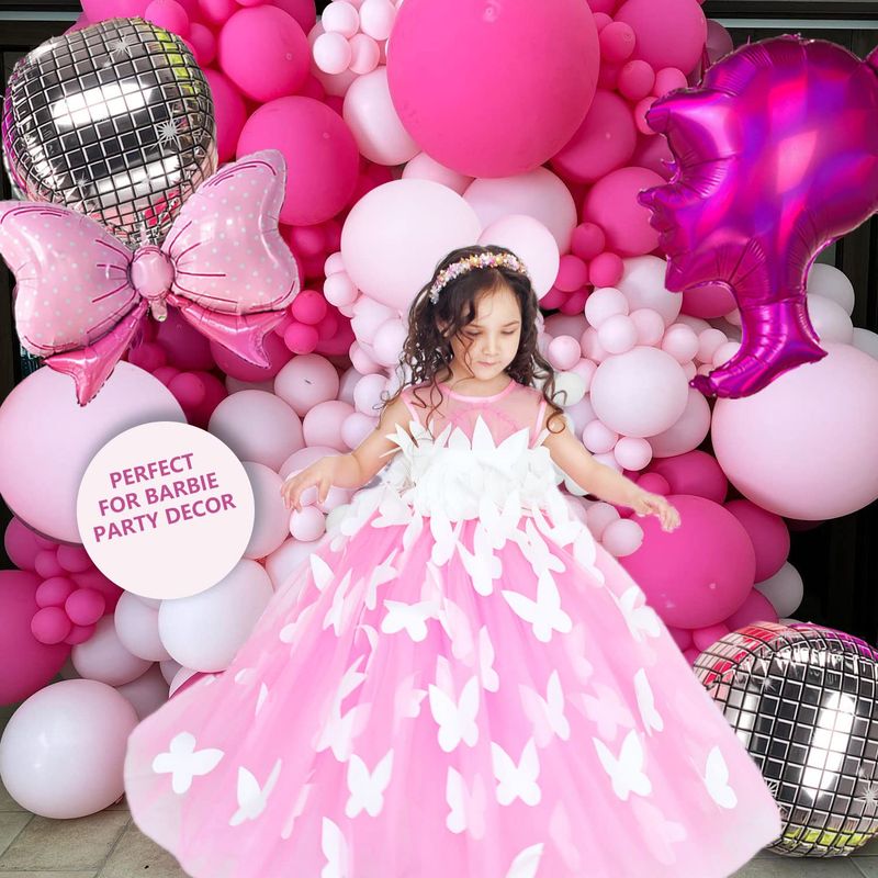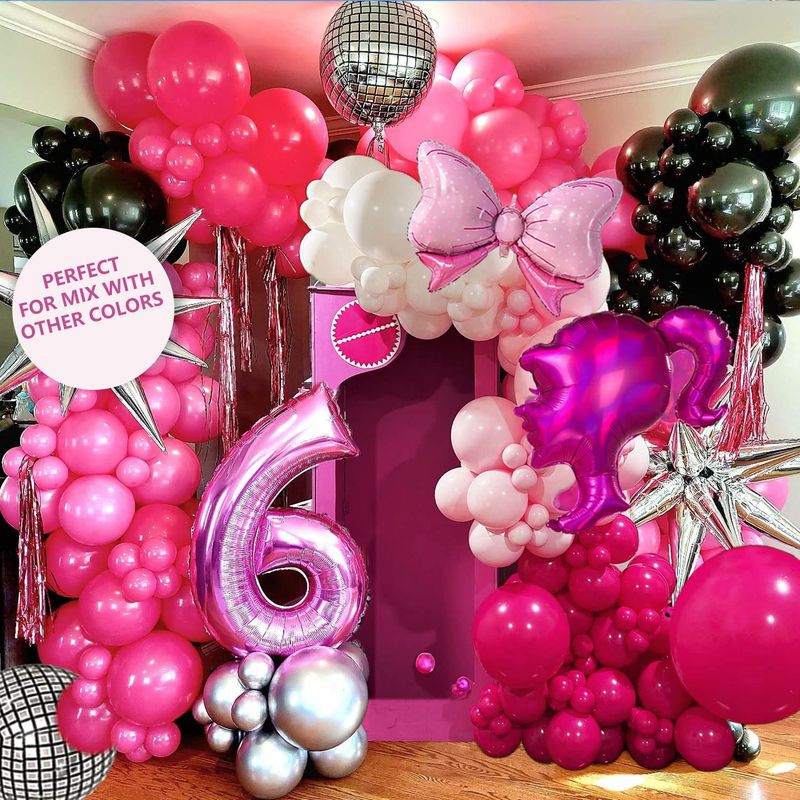 128 Pcs Pink Rose Red Silver Disco Bow Aluminum Die Balloon Garland Arch Kit Girls Birthday Baby Shower Wedding Party Decoration