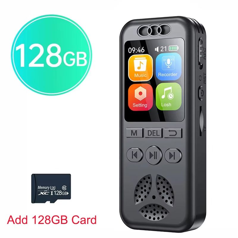 128GB Digital Voice Recorder 1536KBPS Professional Sound Dictaphone Voice Activated Audio Recording WAV MP3 Player for Meeting