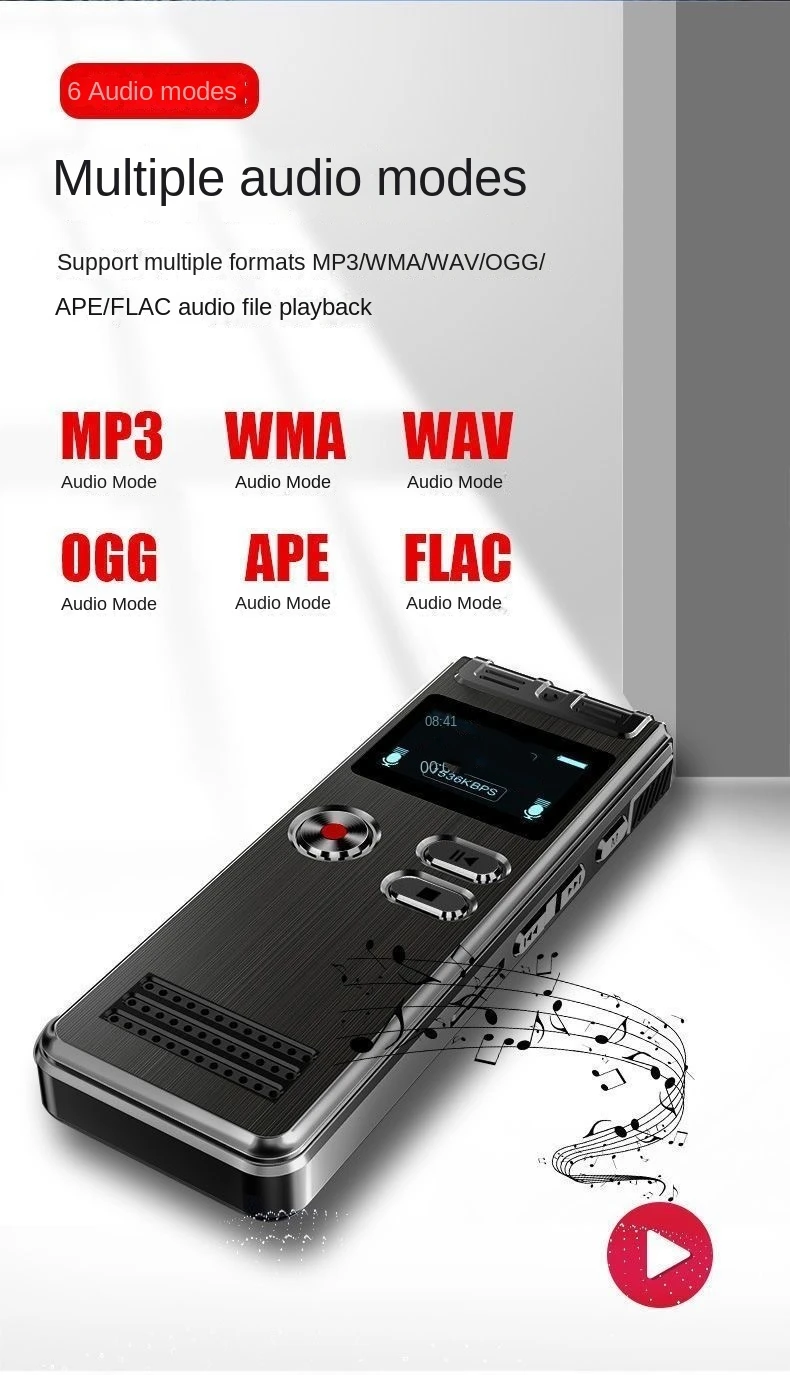 4[.Easy File Transfer and Multilingual Support]: Effortlessly upload and download files or music via USB connection. The recorder supports six languages, making it user-friendly and versatile, ideal for international users.