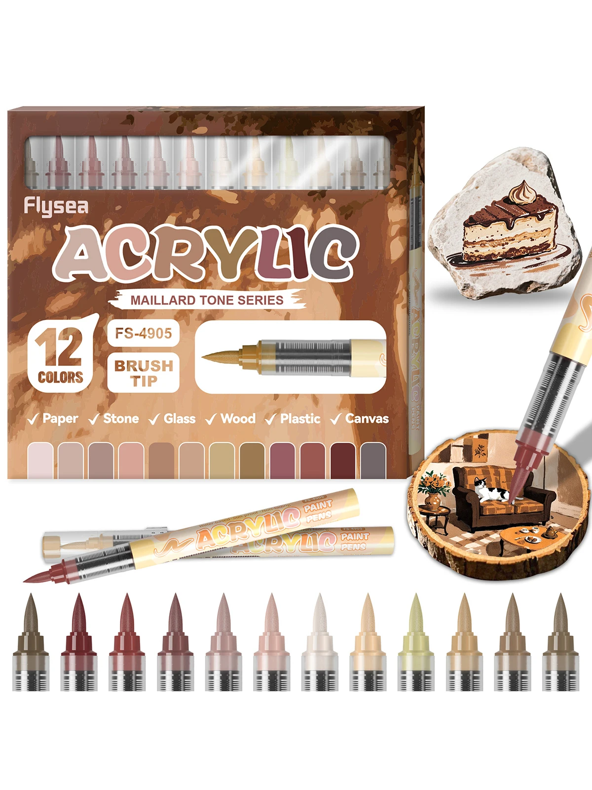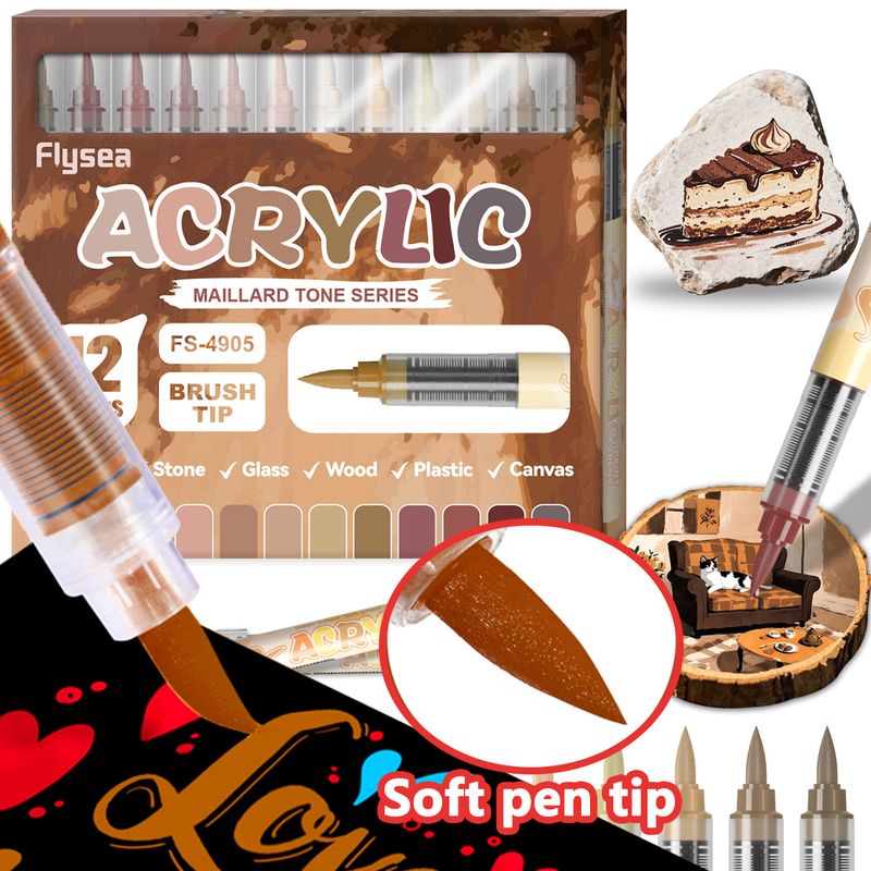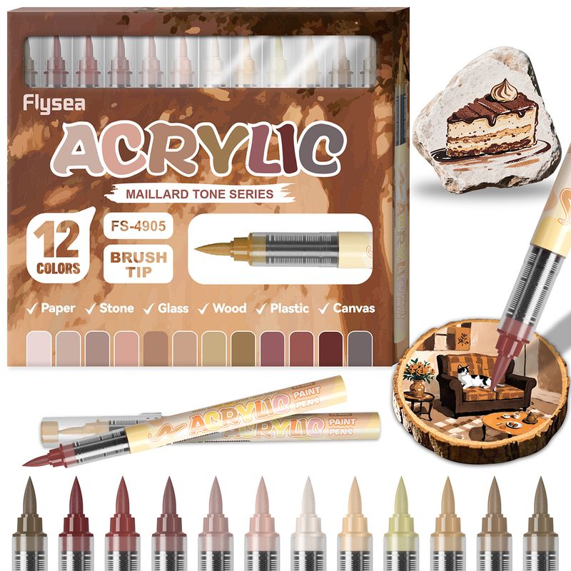 12Colors Acrylic Paint Markers Brush Tip Direct-Liquid Ink Control System Professional-Grade Paint Pen for Any Surface DIY Craft
