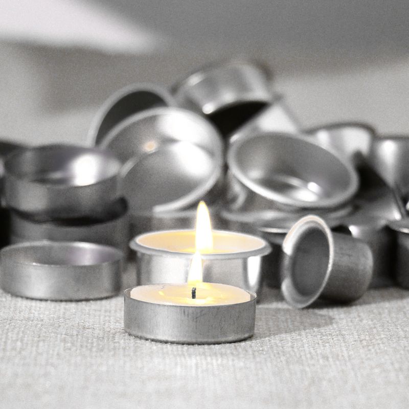 A set of 12 metal cups for candlestick accessories, round top edges make the operation safer.